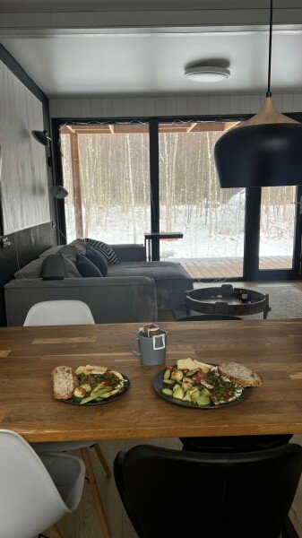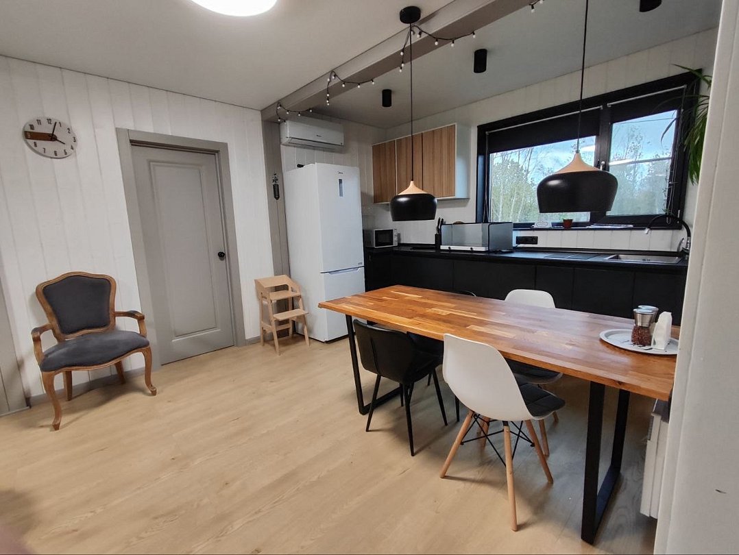 Дом полностью оборудован для комфортного проживания: уютная гостиная с креслами и диваном, современная кухня со всем необходимым для приготовления пищи, Wi-Fi, ТВ, музыкальный центр.