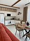 На 1-м этаже просторная кухня-гостиная с обеденной зоной на 4-6 гостей, удобным диваном и ТВ. Кухонная зона оборудована всем необходимым, включая фильтры для воды, индукционную плиту и духовку, вместительный холодильник, СВЧ, ПММ, эл. чайник, посуду для готовки и сервировки стола.