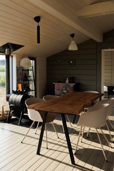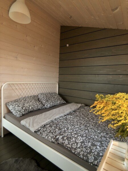 В доме комфортно разместиться семье с детьми. Или двум семьям с детьми. Также дом выбирают пары.