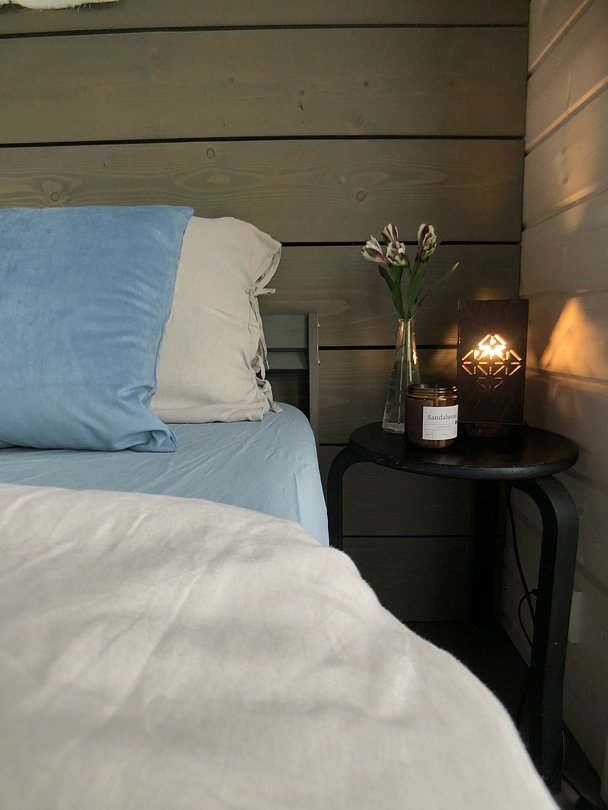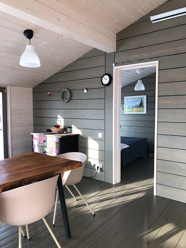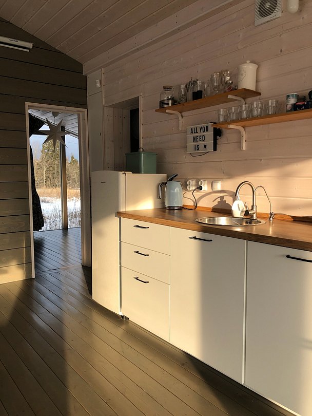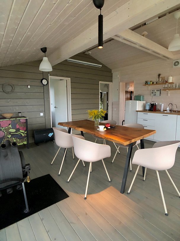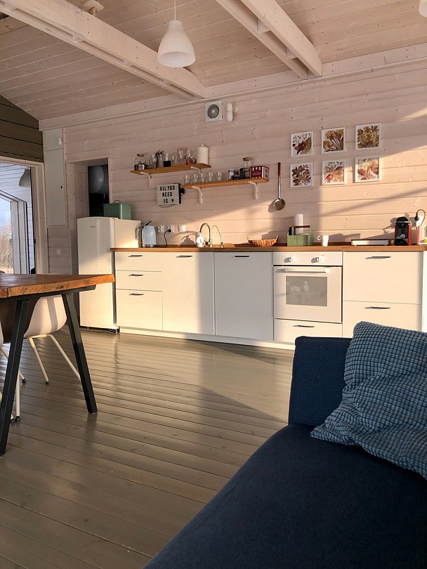 Кухня полностью оборудована: варочная панель, духовка, посудомоечная машина, холодильник, чайник, кофемашина Nespresso, тостер, микроволновая печь, полный набор посуды. В каждой комнате — обогреватель. В доме также есть ванная комната, туалет, стиральная машина, Wi-Fi и умная колонка Яндекс.Алиса.