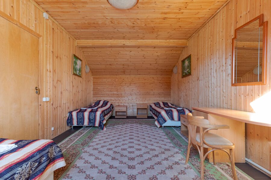 На благоустроенной территории площадью 6,5 гектаров вас ждут комфортные номера в кирпичных коттеджах, гостинице или уютных деревянных домиках. Каждый номер оборудован удобными кроватями, тумбочками, шкафами и оснащен собственной ванной комнатой с душем или ванной. В коттеджах вас ждет мини-кухня с мягким уголком и собственная сауна для настоящего релакса.