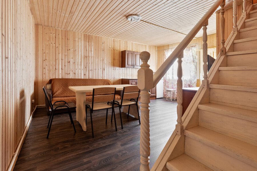 В таком доме вы почувствуете вкус настоящего русского стиля. Таких 4х местных домиков шесть штук, они расположены на берегу озера и около них находится баня. В домике имеется все необходимое для отдыха.