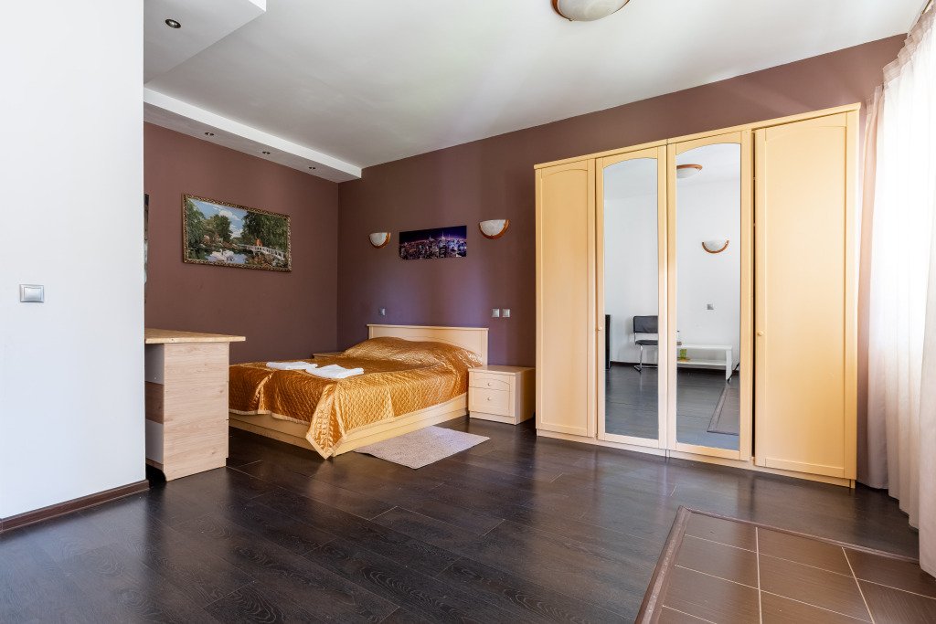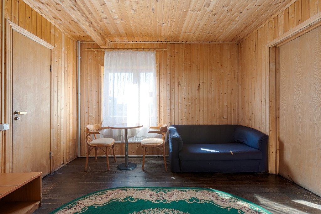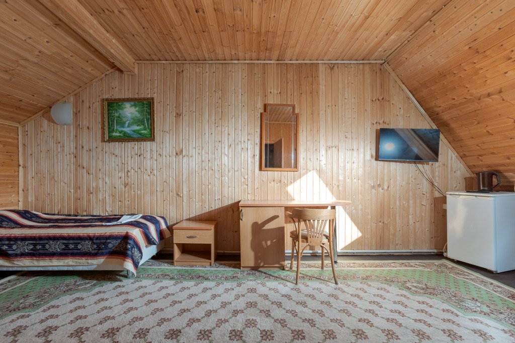 Все номера укомплектованы бытовой техникой, односпальной или двуспальными кроватями, тумбочками, шкафами, и оснащены санузлами с душем или ванной, в зависимости от выбранного жилья, в коттеджах также есть мини-кухня с мягким уголком и собственная сауна.