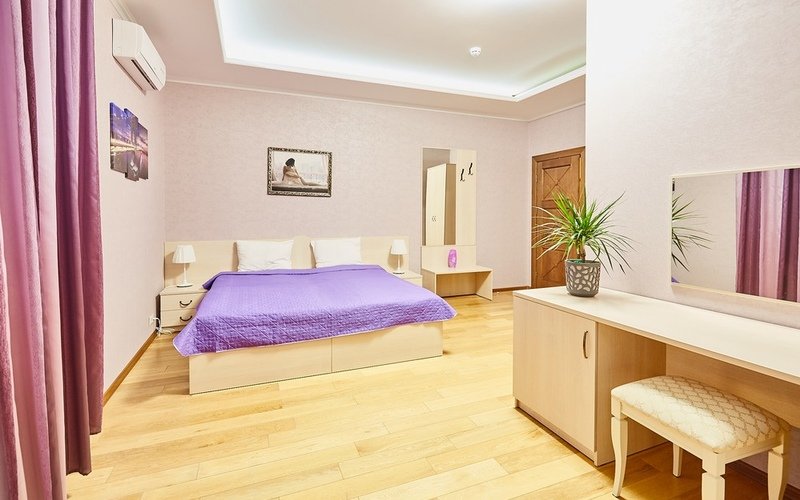Двуспальная кровать с ортопедическим матрасом, стильная мебель, оборудование данного номера обеспечивает качественный отдых.
