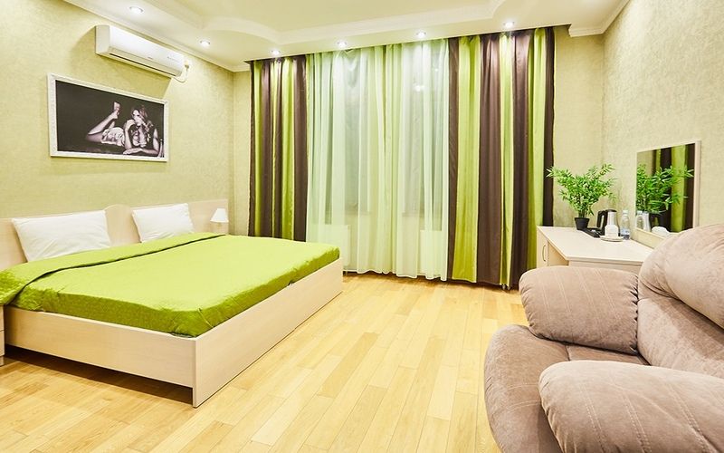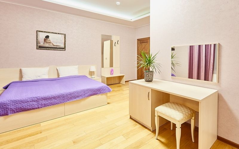 Однокомнатный двухместный номер, оборудован одной двуспальной кроватью с ортопедическим матрасом.