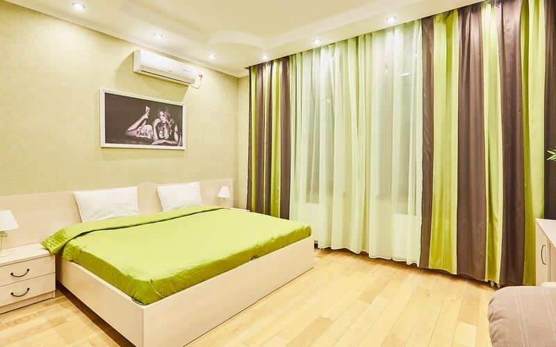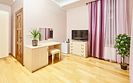 Интерьер в спокойных тонах, оборудован двуспальной кроватью, диваном который обеспечивает дополнительные спальные места. Просторный шкаф, сейф, прикроватные тумбы, комод.