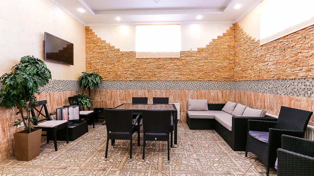 Комфортная мебель и наличие телевизора позволят совместить оздоровительные процедуры с просмотром любимых передач или незабываемых матчей любимых команд.