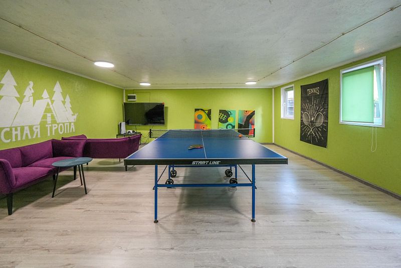 Дом полностью оснащён всем необходимым для отдыха и обогревается тёплым полом. В распоряжении гостей зона для барбекю, кухонная зона, лаундж-зона с креслами и костровой чашей, настольные игры, теннис, бильярд, приставка PlayStation.