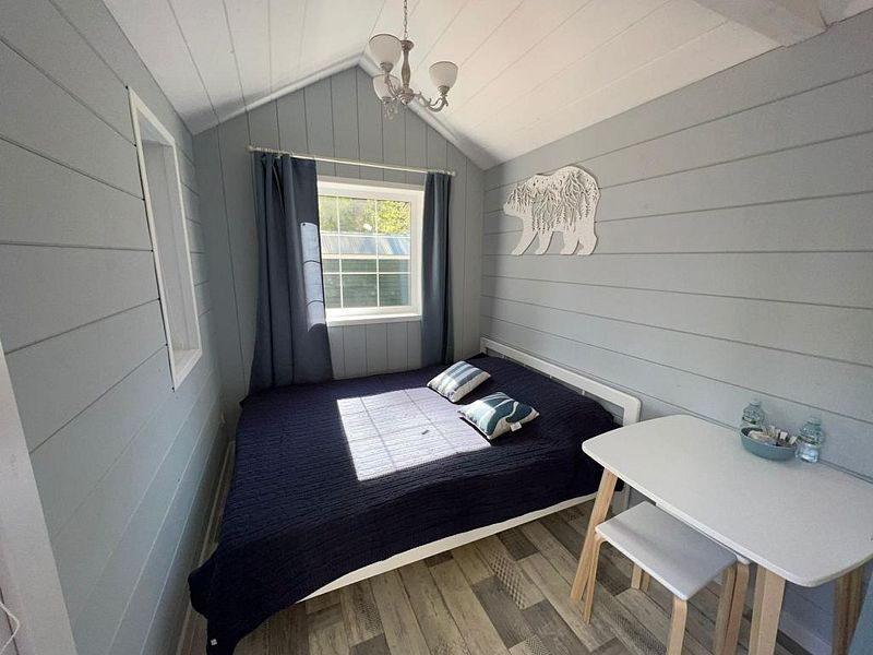Двухместный коттедж с красивым видом из окна двуспальная кровать