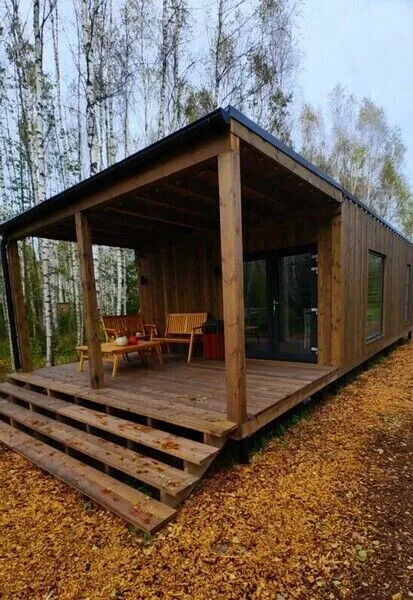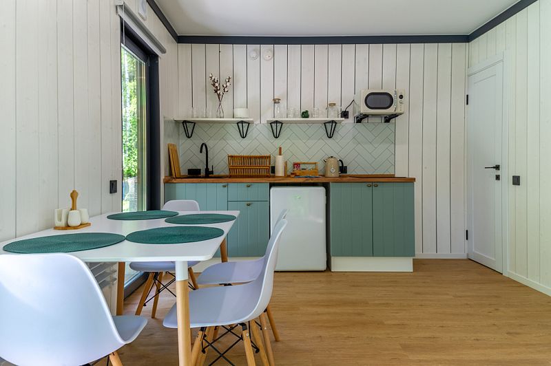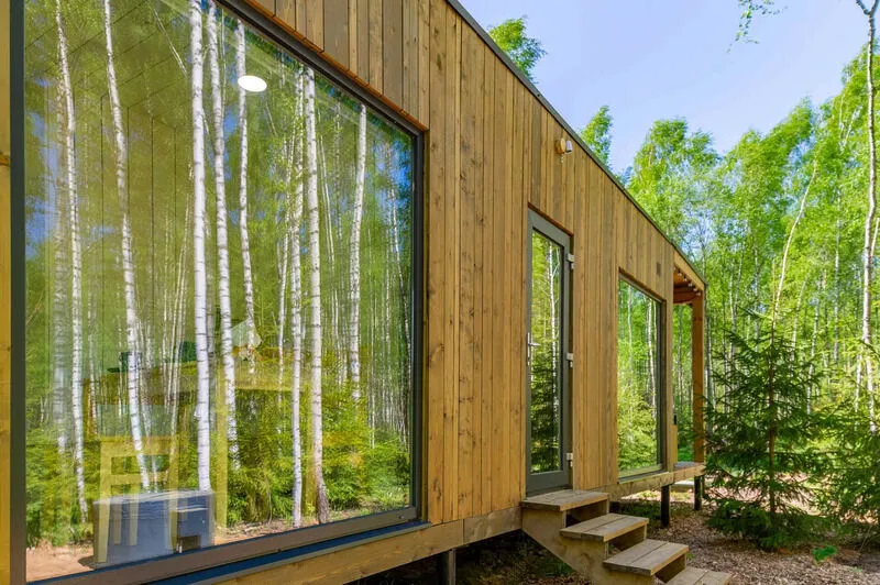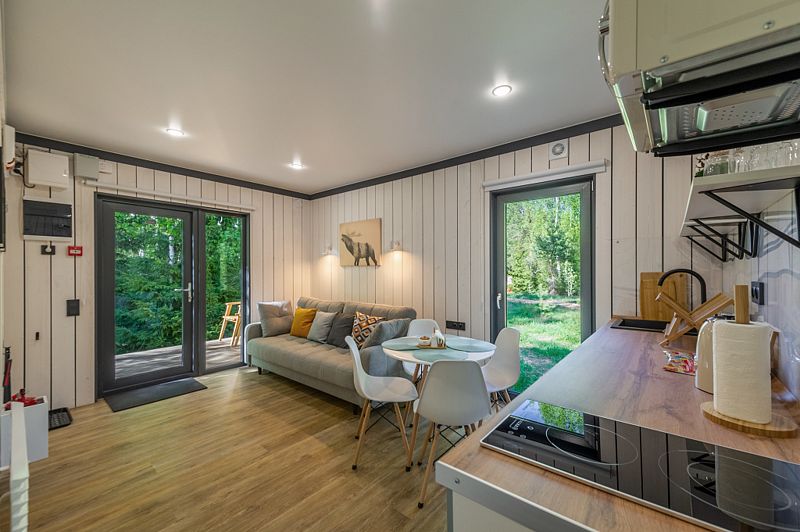 Уютные домики, оформленные в скандинавском стиле, предлагают комфортный отдых со всеми удобствами.