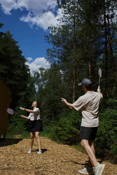 Вы можете потренироваться в лесном спортивном зале. В наличии есть: эспандер, гантели, скакалка и другой инвентарь для активного отдыха.