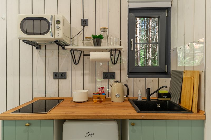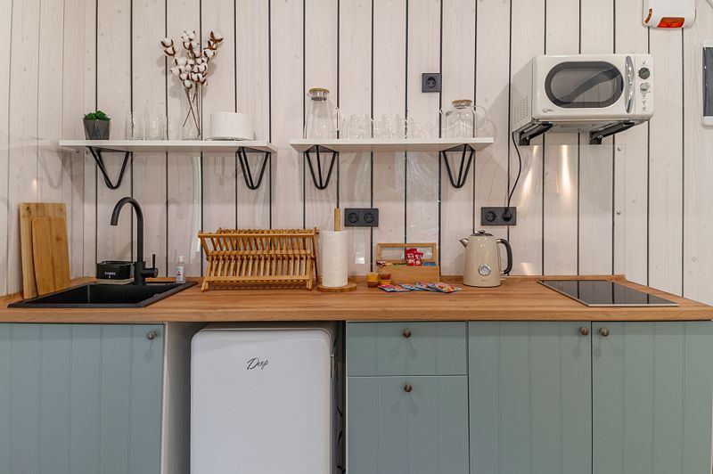 В номере есть полностью оборудованная кухня, ванная комната с необходимыми косметическими средствами, регулируемые батареи и теплый пол, питьевая бутилированная вода, Wi-Fi, собственная зона мангала со столом и скамейками, уличная терраса.