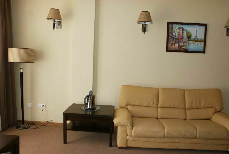 В номере: двухспальная кровать, диван, чайная станция (чайник и набор чайной посуды), мини-бар, телевизор, кондиционер, телефон, душ и туалет.
