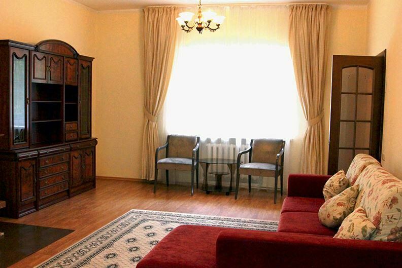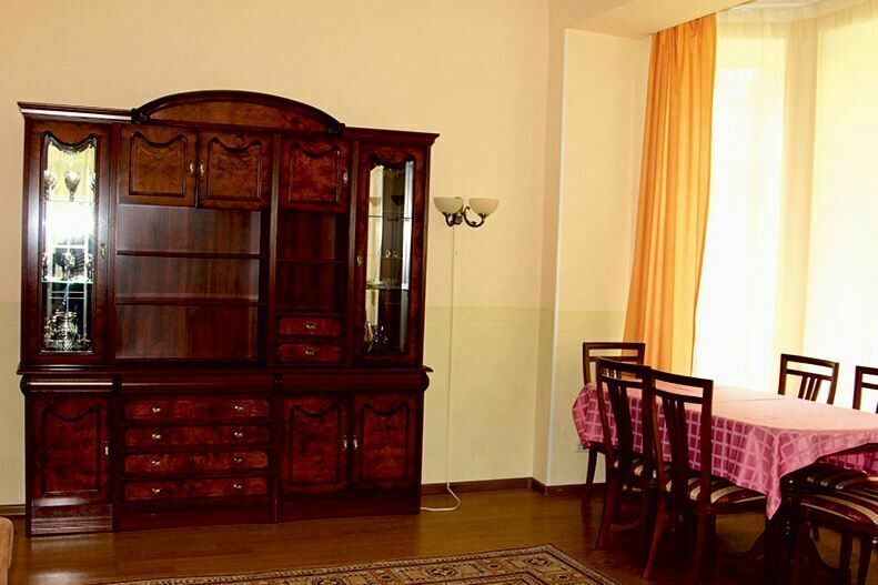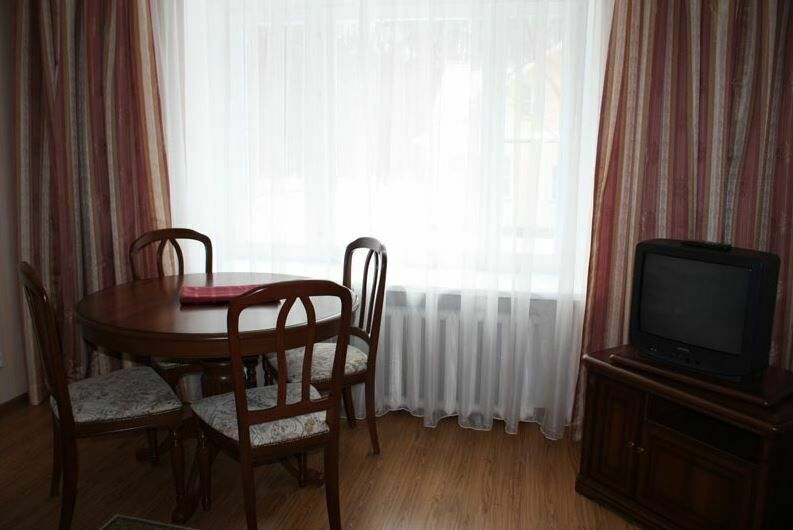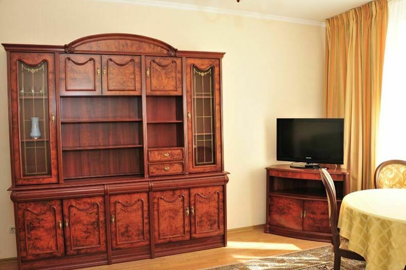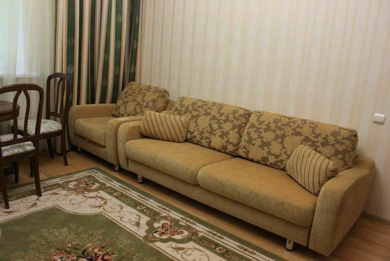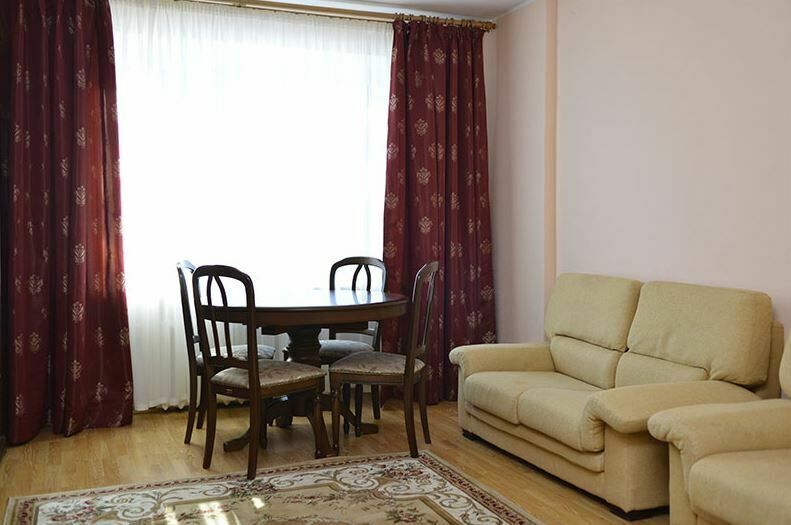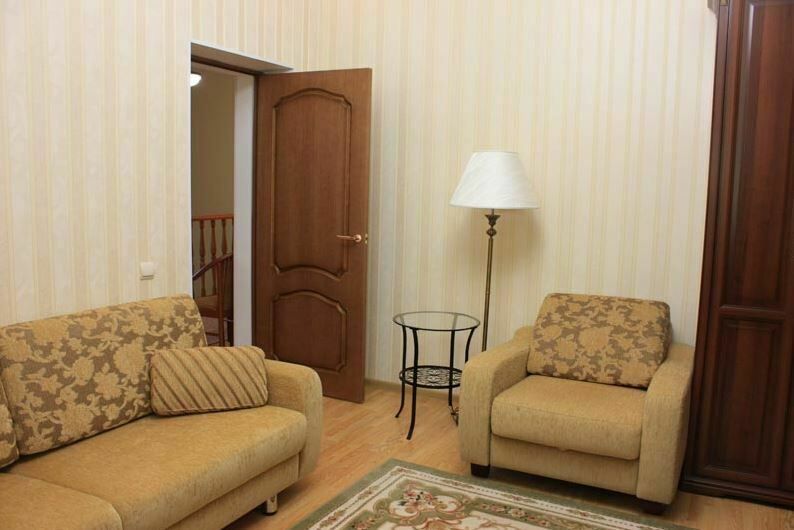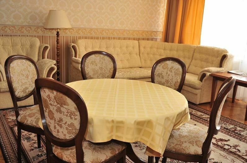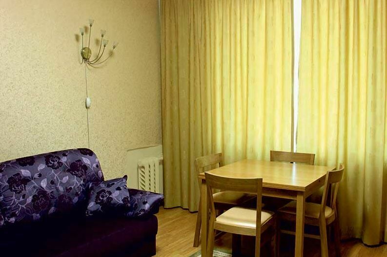 Апартаменты с лоджией, кондиционером, меблирован в классическом стиле, в просторной гостиной мягкая мебель, телевизор, в спальне – двухспальная кровать. В уютной кухне, электрочайник, холодильник, посуда, столовые приборы на 6 персон. В номере два санузла с угловой ванной, стиральной машиной-автомат, феном.