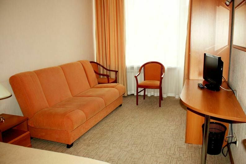 В номере: 2 односпальные кровати, диван, чайная станция (чайник и набор чайной посуды), мини-бар, телевизор, кондиционер, телефон, душ и туалет.