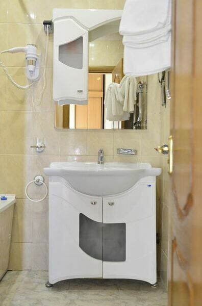 В номере: 2 односпальные кровати, диван, чайная станция (чайник и набор чайной посуды), мини-бар, телевизор, кондиционер, телефон. 3 номера эконом расположены боксом: душевая комната и туалетная комната одна на три номера.