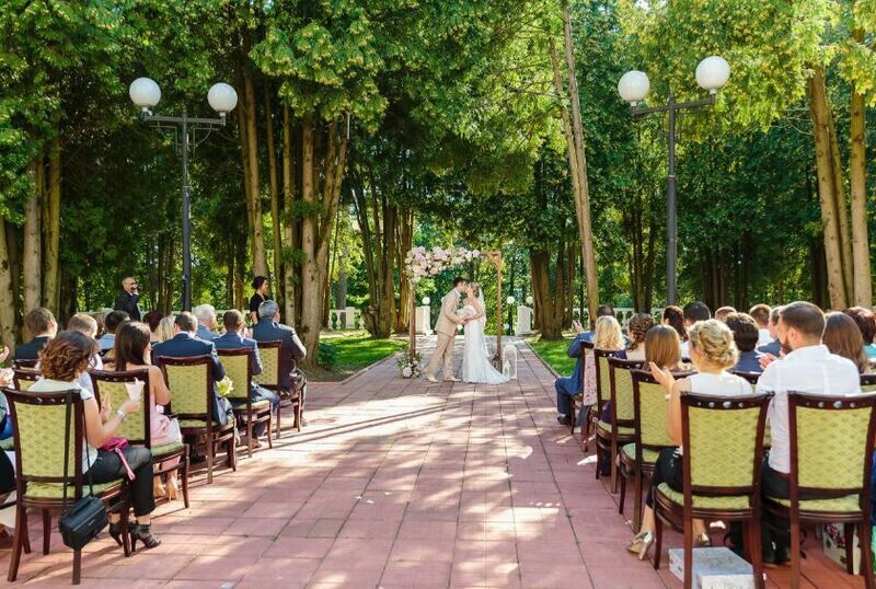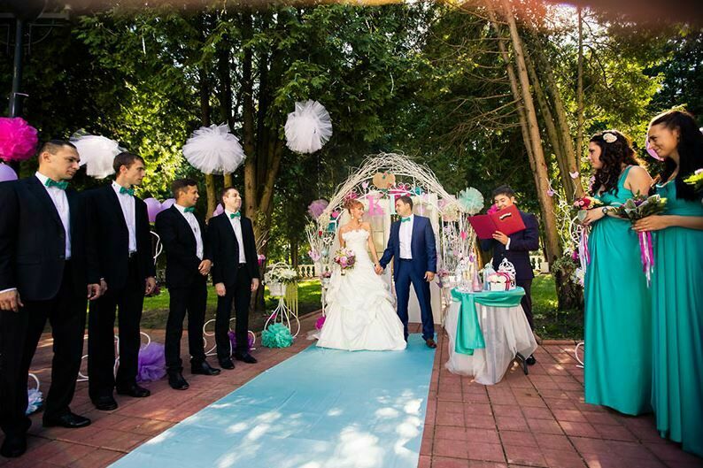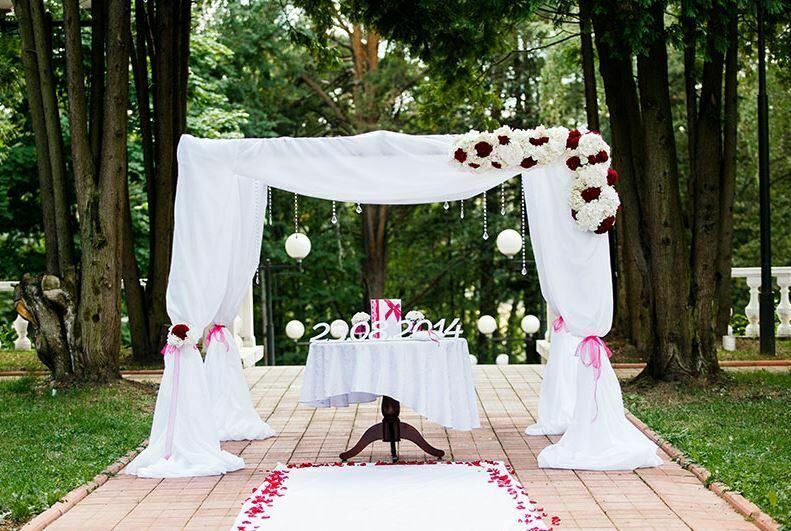 - Возможность использования нестандартных подходов. Доверив организацию своего выездного торжества специалистам комплекса, молодожены и их гости получат все необходимое для реализации любых пожеланий. Свадьба будет соответствовать всем пожеланиям. В ходе подготовки к свадьбе (выездной) организаторы учтут запросы молодых, предпочтения родственников и многочисленных гостей.