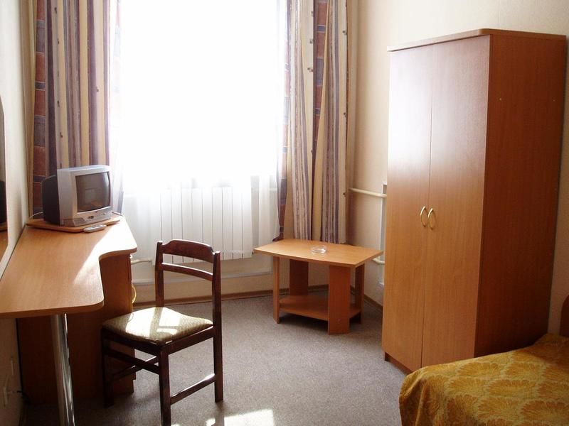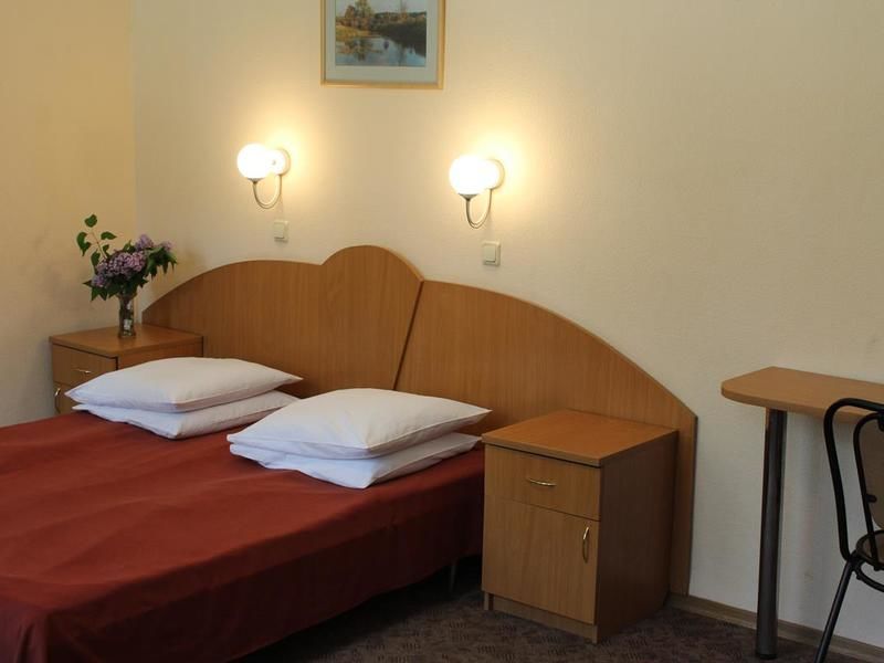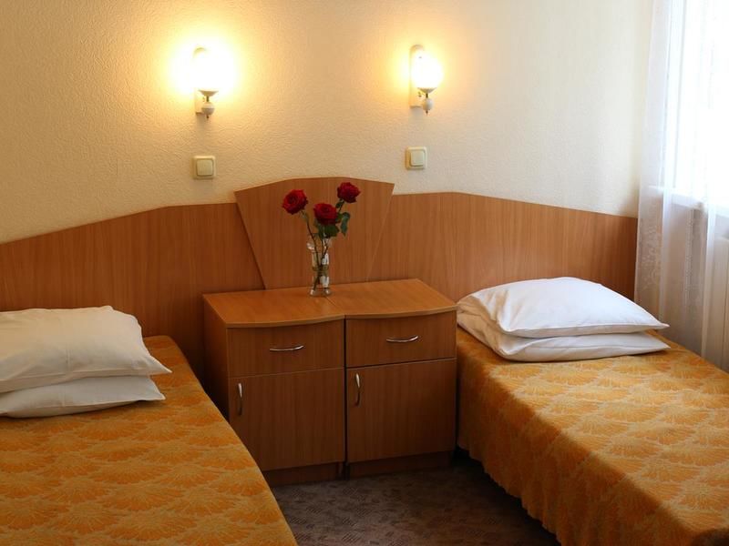 19 номеров. Комната: две 1,5-спальные кровати, тумбочки, бра, туалетный столик, мини-холодильник, электрочайник, чайная посуда, стул, журнальный столик, кресло, TV.
