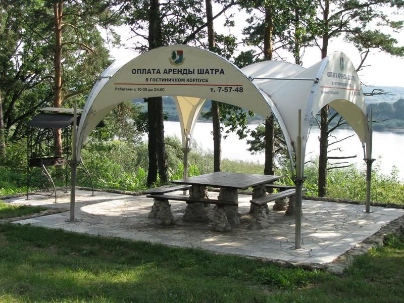 Территория, инфраструктура и удобстваЛетнее кафеЧитать полностьюЛетнее кафе на высоком берегу Оки, – еще одна изюминка пансионата “Соколова Пустынь”. Кафе оборудовано мангалами, холодильниками и уютными деревянными столиками и лавками, зонтами от солнца. Здесь могут комфортно разместиться до 48 посетителей. С территории кафе открываются великолепные виды на Оку и окружающие пейзажи. Посетители кафе могут отведать шашлык или семгу, приготовленные на углях, свежеприготовленные салаты, выпечку, мороженое и прохладительные напитки. Кафе на открытом воздухе, – прекрасное место, чтобы организовать пикник на природе, детский праздник или отметить день рождения. Здесь прохладно даже в самый жаркий летний день и можно просто передохнуть после прогулки и выпить чашку ароматного кофе.     Летнее кафеОписаниеЛетнее кафе на высоком берегу Оки, – еще одна изюминка пансионата “Соколова Пустынь”. Кафе оборудовано мангалами, холодильниками и уютными деревянными столиками и лавками, зонтами от солнца. Здесь могут комфортно разместиться до 48 посетителей. С территории кафе открываются великолепные виды на Оку и окружающие пейзажи. Посетители кафе могут отведать шашлык или семгу, приготовленные на углях, свежеприготовленные салаты, выпечку, мороженое и прохладительные напитки. Кафе на открытом воздухе, – прекрасное место, чтобы организовать пикник на природе, детский праздник или отметить день рождения. Здесь прохладно даже в самый жаркий летний день и можно просто передохнуть после прогулки и выпить чашку ароматного кофе. ШатерЧитать полностьюПровести банкет или праздник для небольшой компании на берегу Оки можно в шатре со столом и мангалом. Шатер находится в живописном месте и может вместить до 25 гостей. Стоимость (с 12-00 до 23-00): - с 01.05-30.09: (до 15 человек) - 4000 руб.