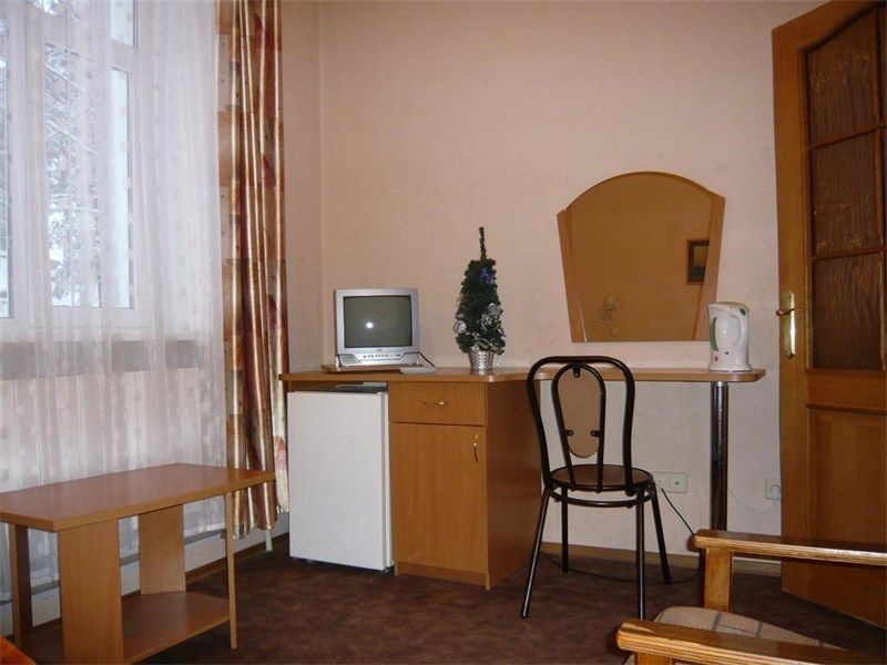 2 номера. Комната: одна 1,5-спальная кровать, тумбочка, бра, туалетный столик, мини-холодильник, электрочайник, чайная посуда, стул, платяной шкаф,  журнальный столик, кресло, TV.