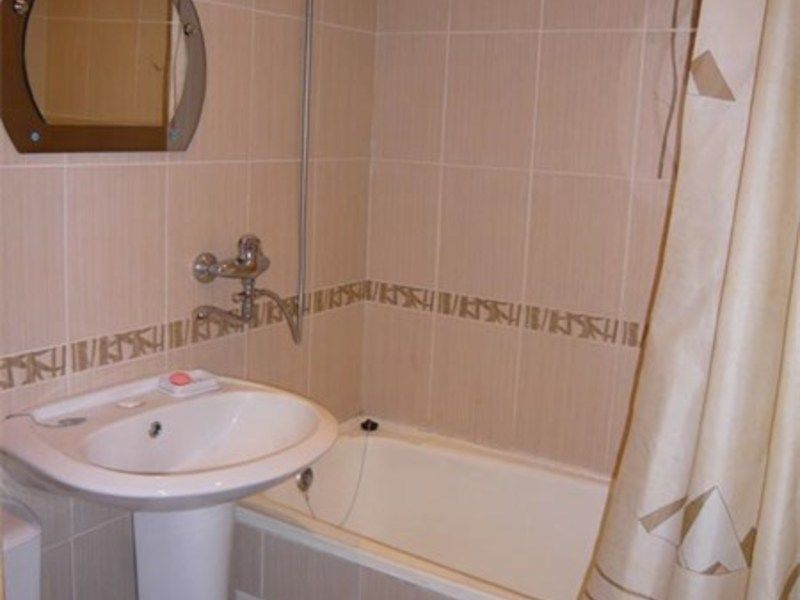 Комната: 2-спальная кровать, тумбочки, бра, туалетный столик, мини-холодильник, электрочайник, чайная посуда, стул, журнальный столик, диван, два кресла, TV.