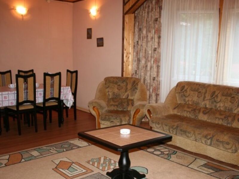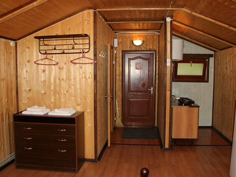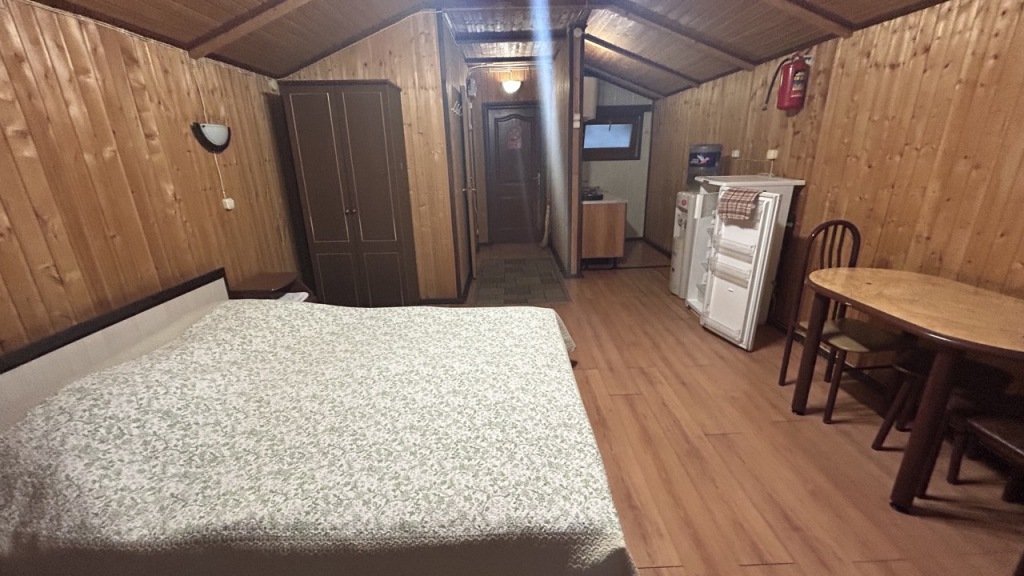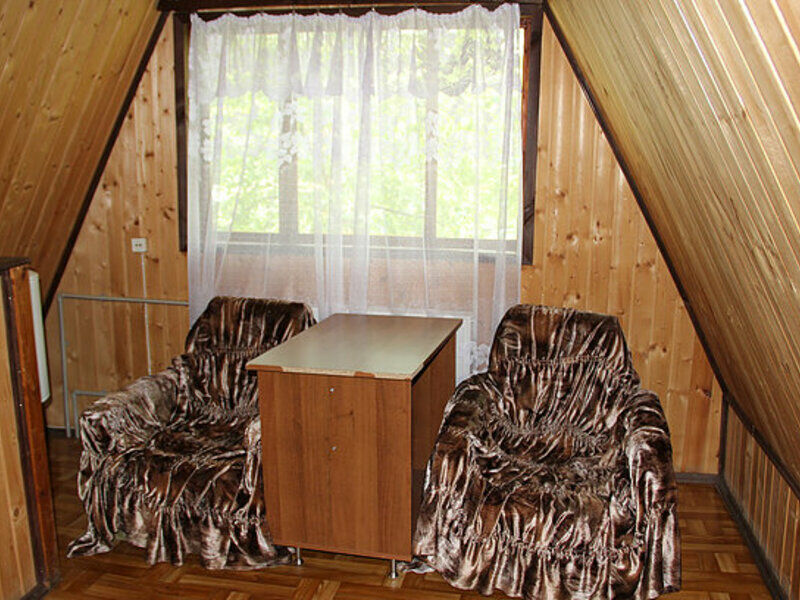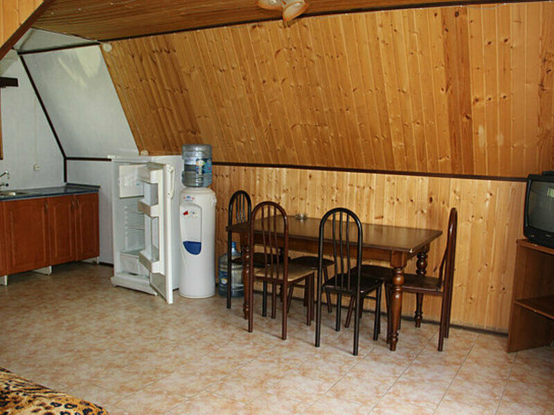 Номер состоит из спальной комнаты, прихожей и гостиной. Имеется собственная мини-кухня. санузел с душем. Рядом – мангальная зона, предназначенная для барбекю.