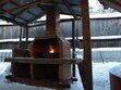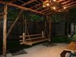 Просторный уличный навес с большим Барбекю, большим столом, огромными качелями и лавочками.