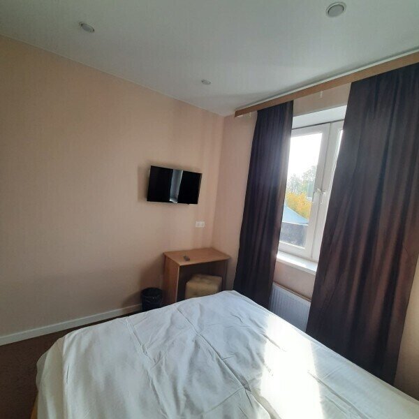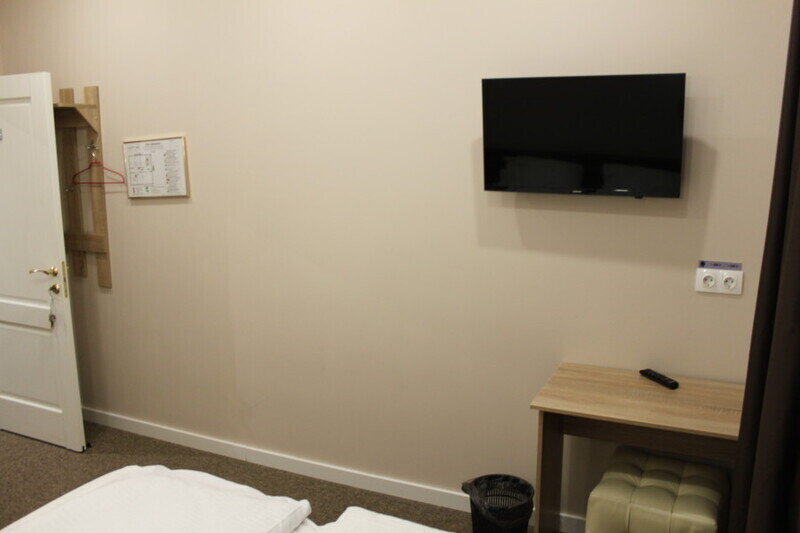 В номере одна односпальная кровать, ТВ, душ, туалет, стол, окно во двор, Wi-fi.