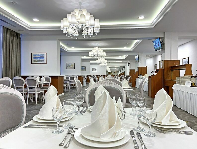 Для семей с детьми предлагается большой выбор различных вариантов активного отдыха и развлечений. Для корпоративных клиентов, а также для проведения свадеб и юбилеев в пансионате имеются просторные банкетные залы.