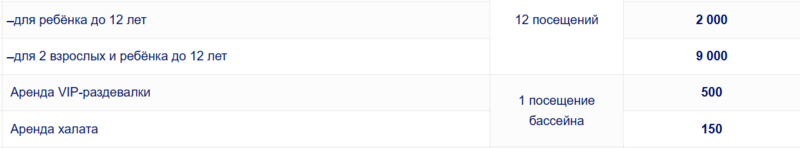 - крытый бассейн длиной 25 м, глубиной от 1,2 до 1,75 м с каскадной установкой и функцией гидромассажа;