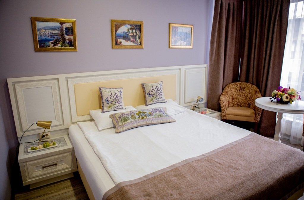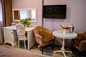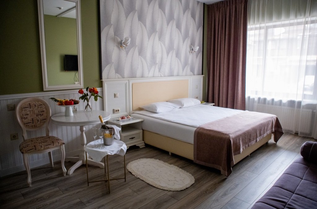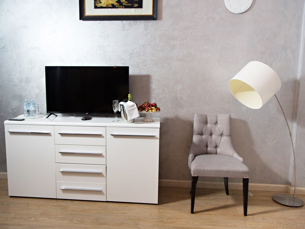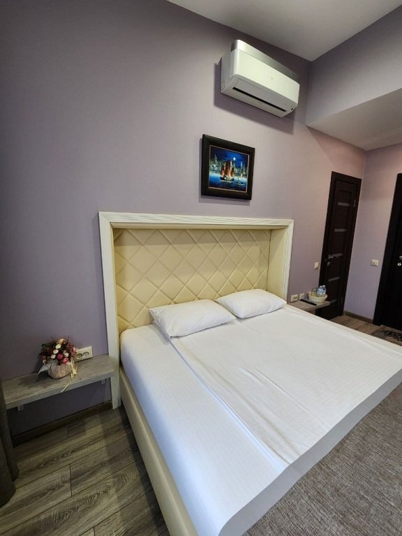 Номер просторный со светлым интерьером и мягкой ортопедической кроватью даст возможность отдохнуть и перезагрузится. А ванная комната с авторской мебелью останется в вашей памяти на долго.