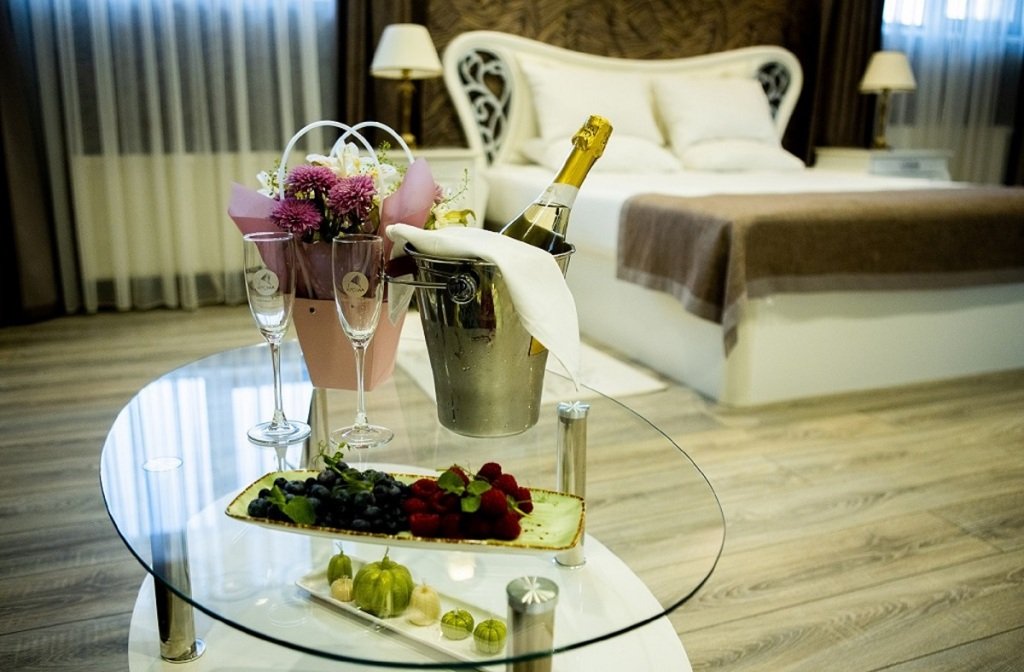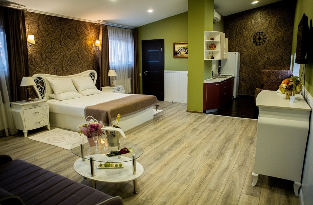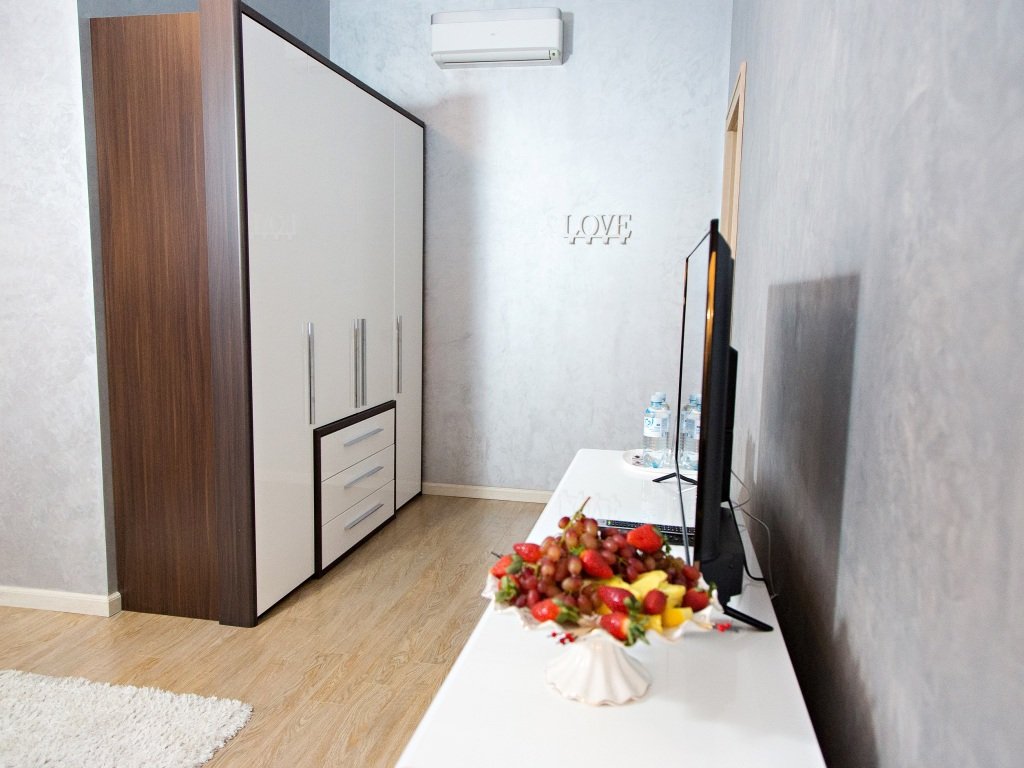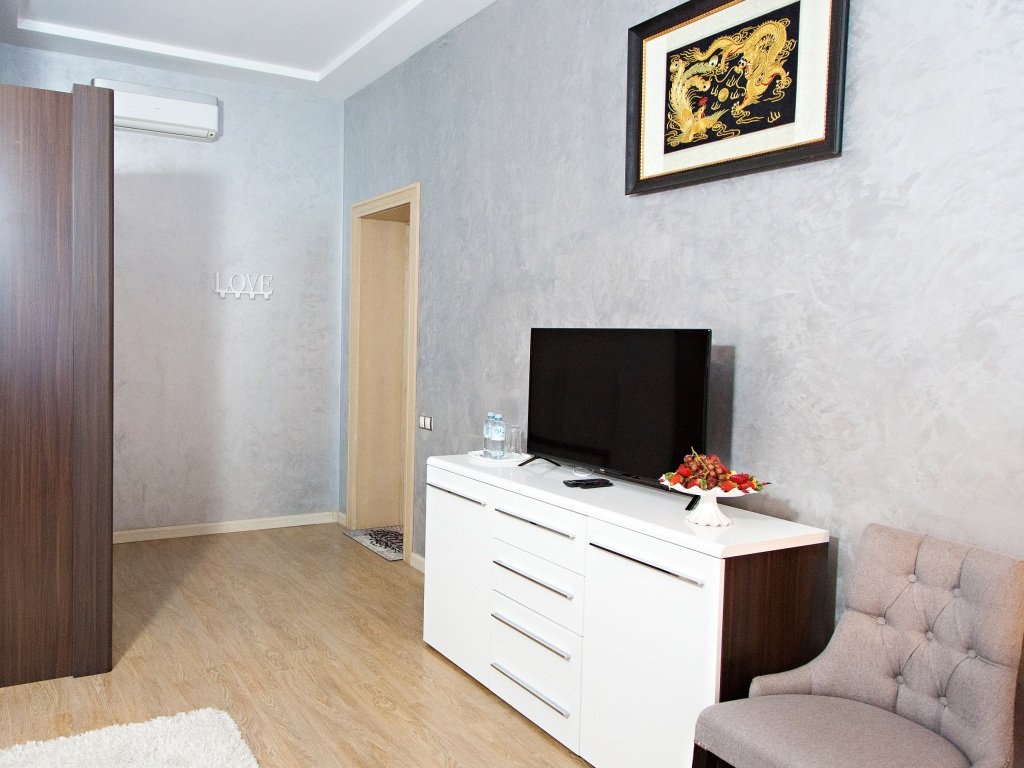 Номер оснащен телевизором, кондиционером, тапочками, ванными принадлежностями, питьевой водой.