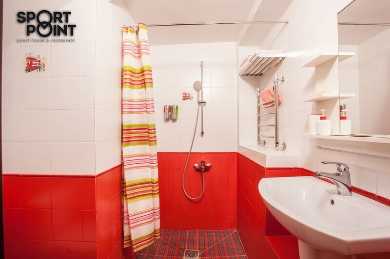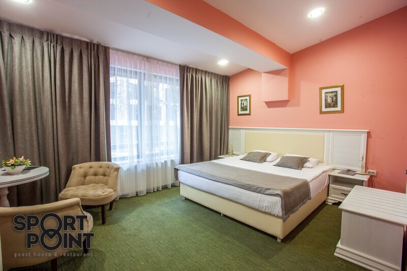 Просторный номер в нежно-розовом цвете подарит Вам чудесный отдых в «Олимпийской деревне Новогорск». Все номера гостевого дома Sport Point обработаны специальным звукоизоляционным материалом, поэтому Вы сможете полностью расслабиться.