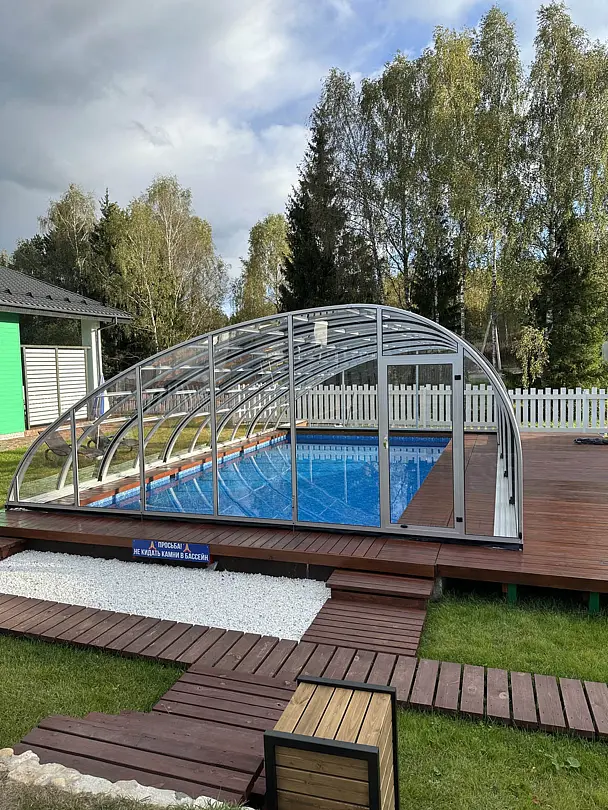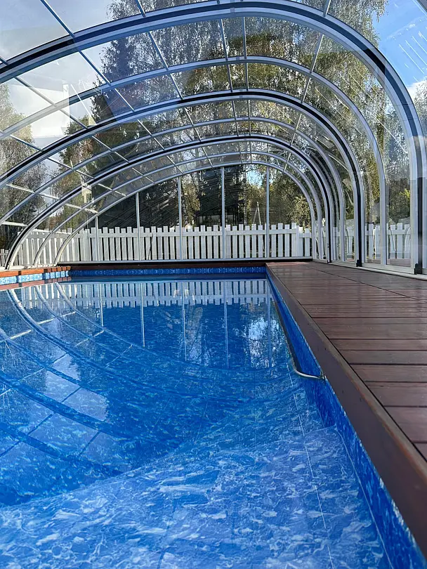 На территории расположен благоустроенный пруд и красивая парково-лесная зона, идеально подходящая для спокойного отдыха на природе. В пруду водится карп весом 1–1,5 кг и белый амур, для рыбалки предоставляется всё необходимое оборудование и принадлежности. На территории доступен просторный крытый бассейн с комфортной температурой воды 30–32 °C и глубиной 1,3 м, а рядом расположены уютные беседки-перголы.