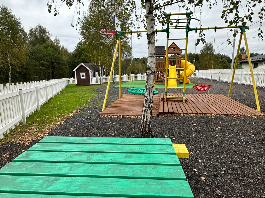 Для семейного отдыха предусмотрены батут, качели, стол для настольного тенниса, площадка для бадминтона и баскетбольное кольцо, поэтому и дети, и взрослые найдут развлечения по вкусу.