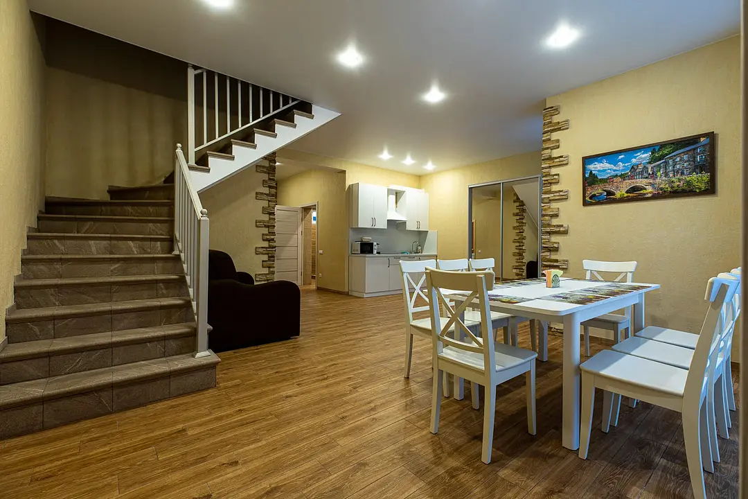 Одна односпальная кровать, одна двуспальная кровать, одна диван-кровать, одна двухъярусная кроватьВ доме