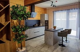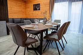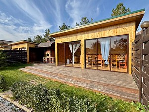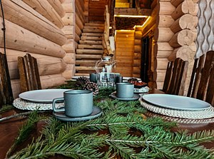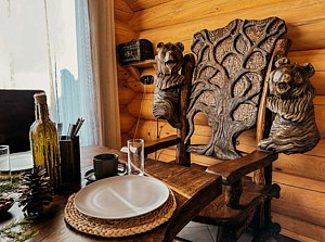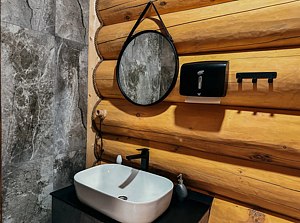 Территория отеля просторная и закрытая, предоставляя гостям полный комфорт и уединение. Размещение предлагается в деревянных домах различной вместительности и уровня комфорта. Каждый дом оборудован двумя спальнями, двумя ванными комнатами, душевым кабинетом, гостиной-кухней и большим балконным пространством с великолепным видом. Некоторые коттеджи дополнительно оснащены второй душевой зоной, ванной комнатой, турецкой баней-хаммамом или традиционной русской сауной. Интерьер номеров выдержан в спокойных оттенках, оснащен большими панорамными окнами с видами на реку и собственным зеленым двориком. Здесь также приветствуются гости с маленькими домашними животными.