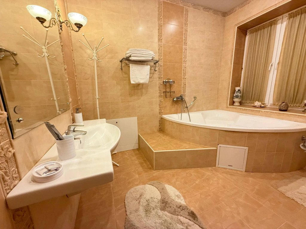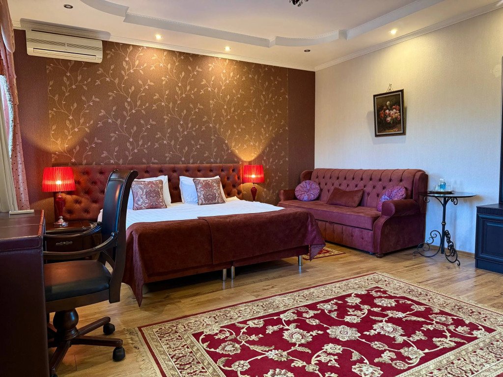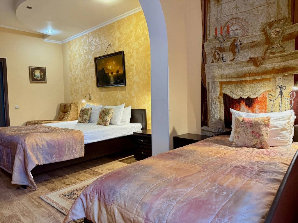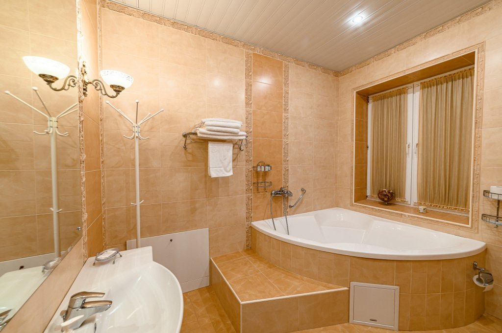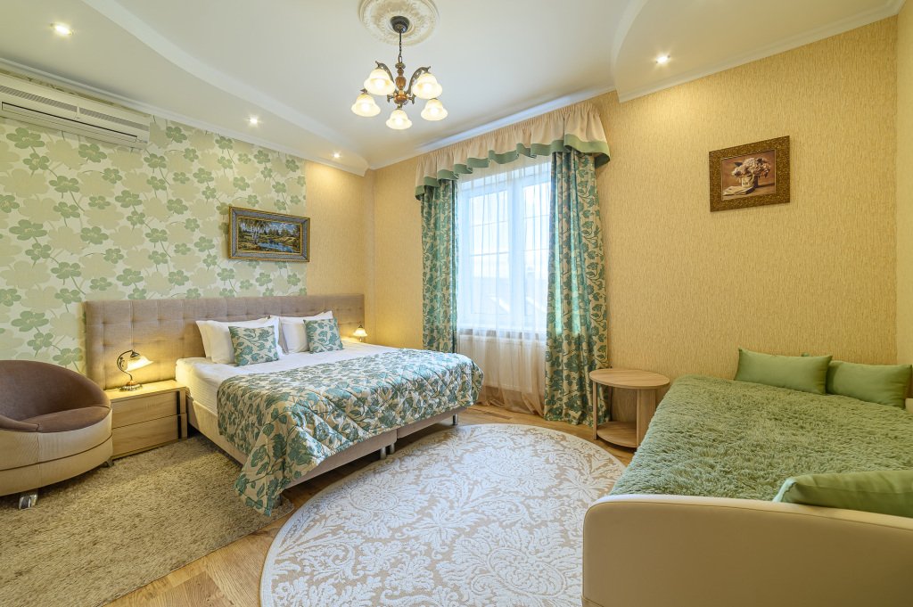К услугам гостей русская дровяная баня, 3 вида саун: финская, соляная и инфракрасная, кедровая бочка, бассейн. Во дворе есть площадка для барбекю и теплая беседка. Также есть бильярдная комната, небольшой тренажерный зал, настольный теннис, шахматы. Бесплатный Wi-Fi на всей территории. Континентальный завтрак включен в стоимость проживания.