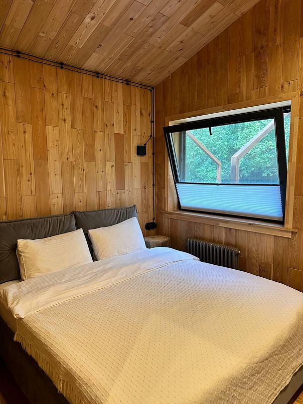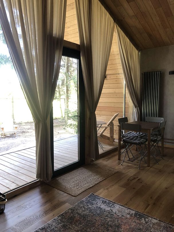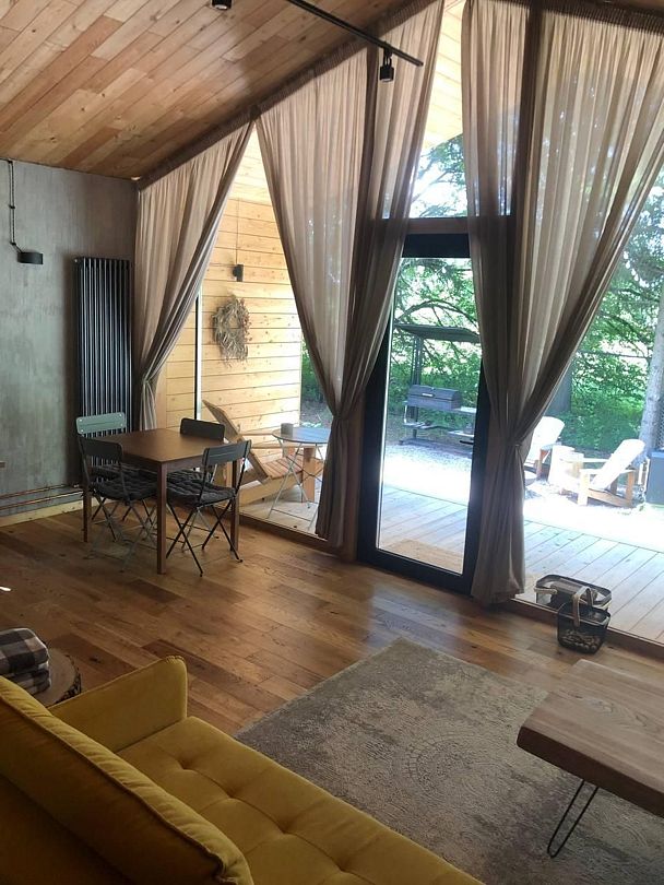 В каждом домике есть удобная мебель, современная бытовая техника, wi-fi. Вы сможете насладиться ароматным чаем сидя на веранде, с которой открывается прекрасный вид на окрестности.