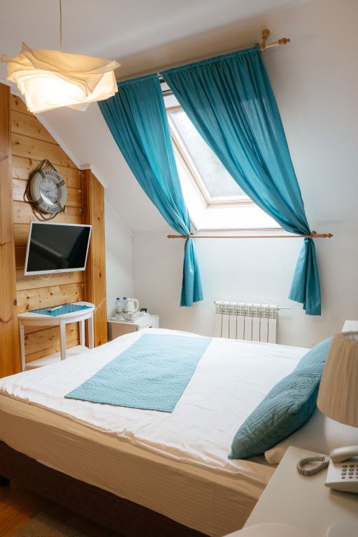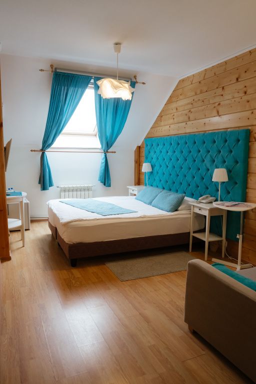 Расположение: в отдельно стоящем двухэтажном коттедже на втором этаже,на первом этаже, располагается номер "Полулюкс".