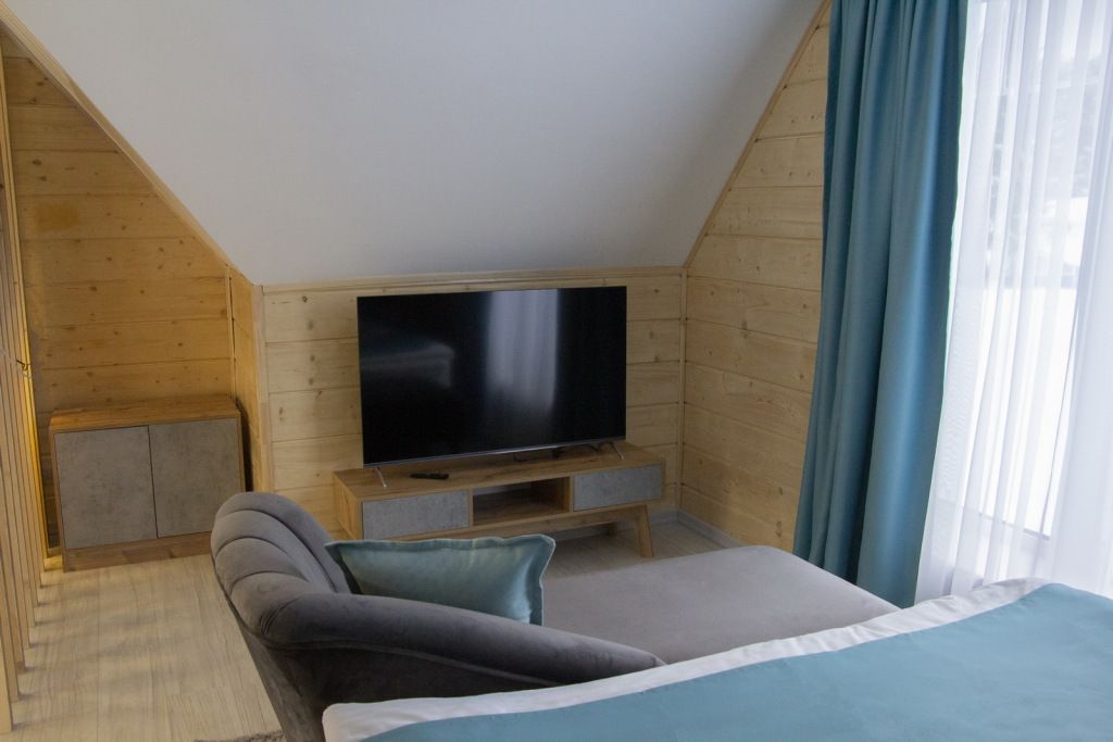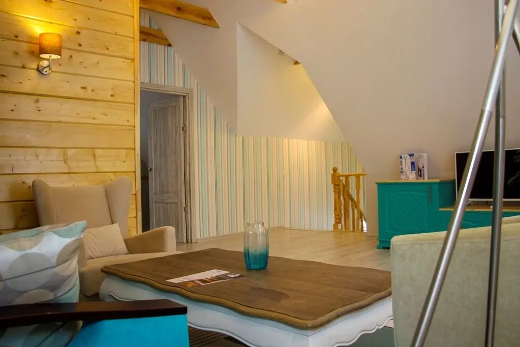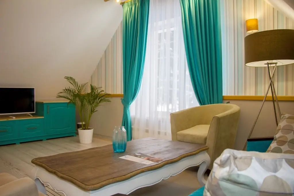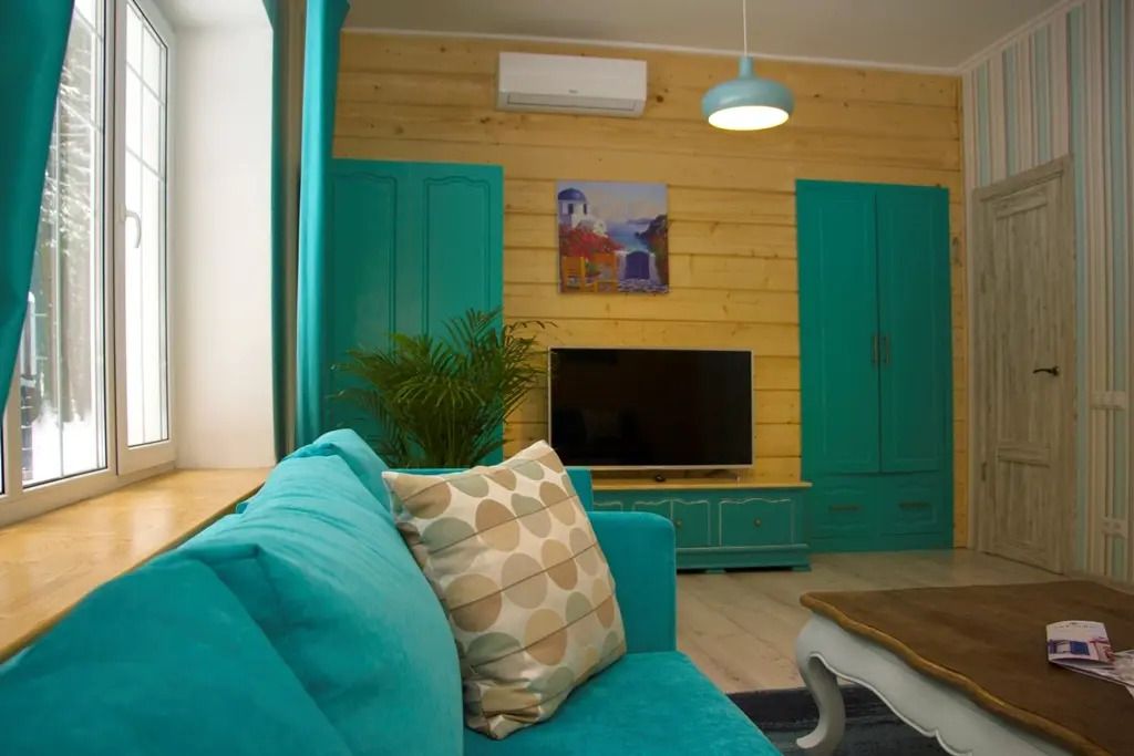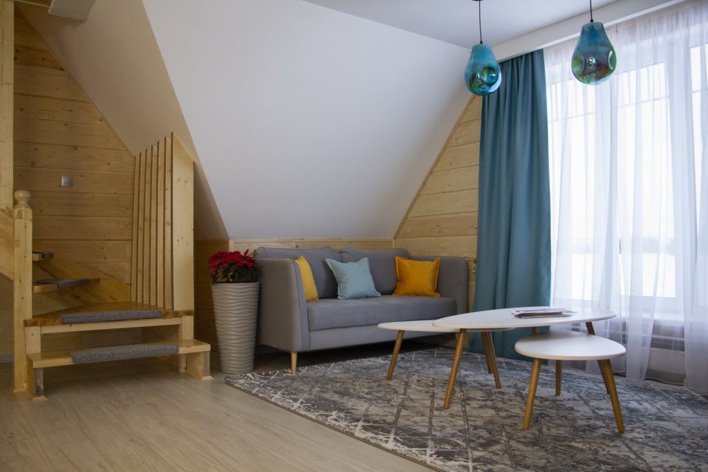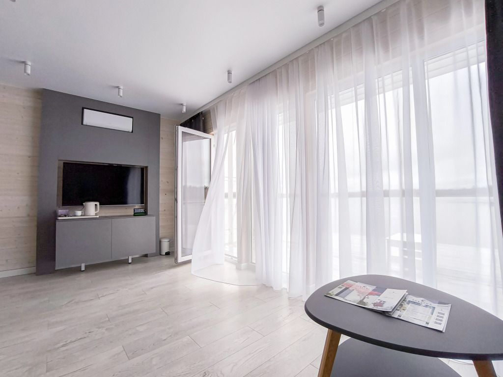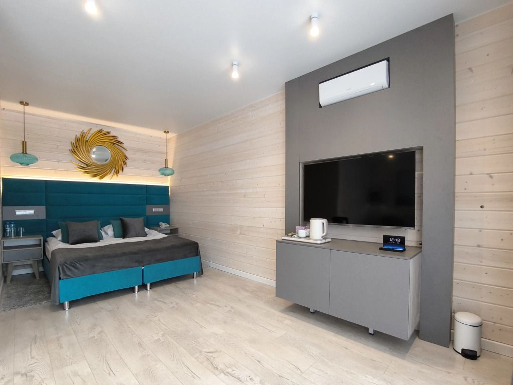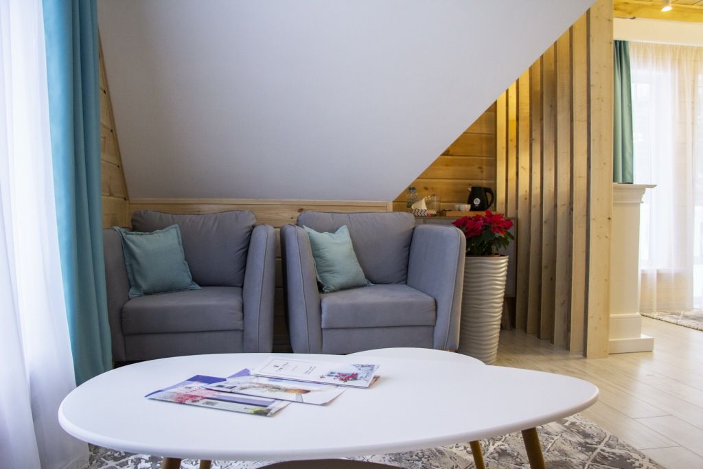 В гостиной: диван, который можно разложить при размещение более двух гостей ( за дополнительную оплату), журнальный столик, шкаф для одежды, мини-холодильник, система автоматического кондиционирования и отопления. Номер подходит для размещения гостей, которые путешествуют с детьми.