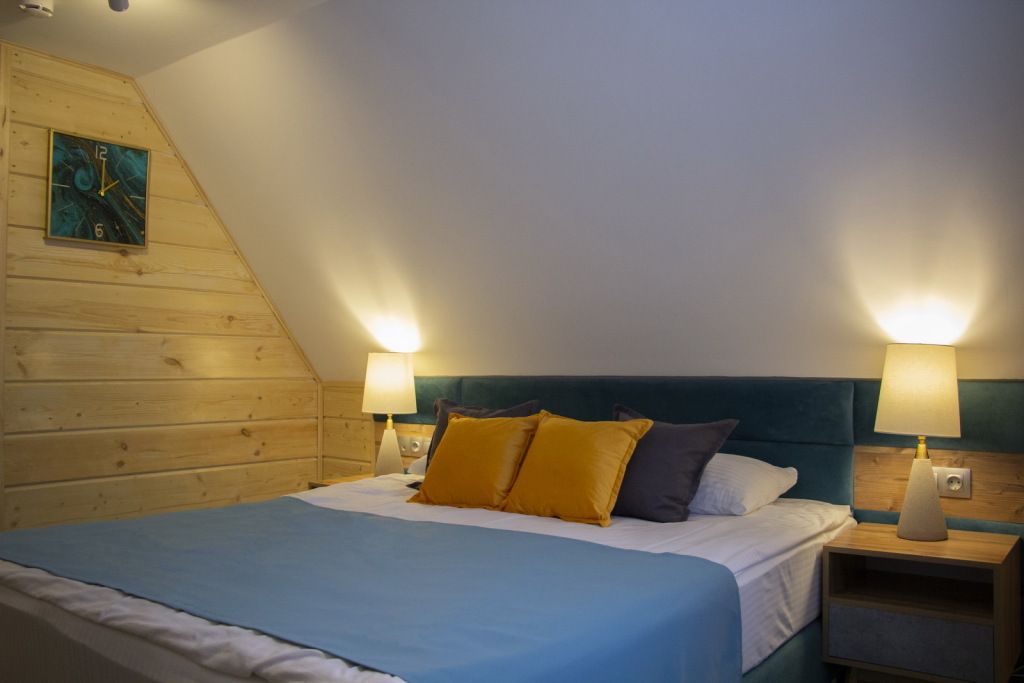 Расположение: в отдельно стоящем двухэтажном коттедже на первом этаже, на втором этаже располагается номер "Люкс". В каждом номере возможна установка дополнительного места. Мангальная зона предусмотрена. (Мангал + шампура).