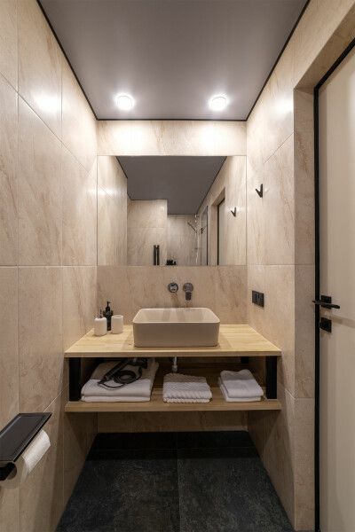 Дом площадью 50 м² для круглогодичного проживания оснащен теплым полом, системой вентиляции, кондиционером. Дом рассчитан на размещение не более 4 человек (2 взрослых и 2 детей).