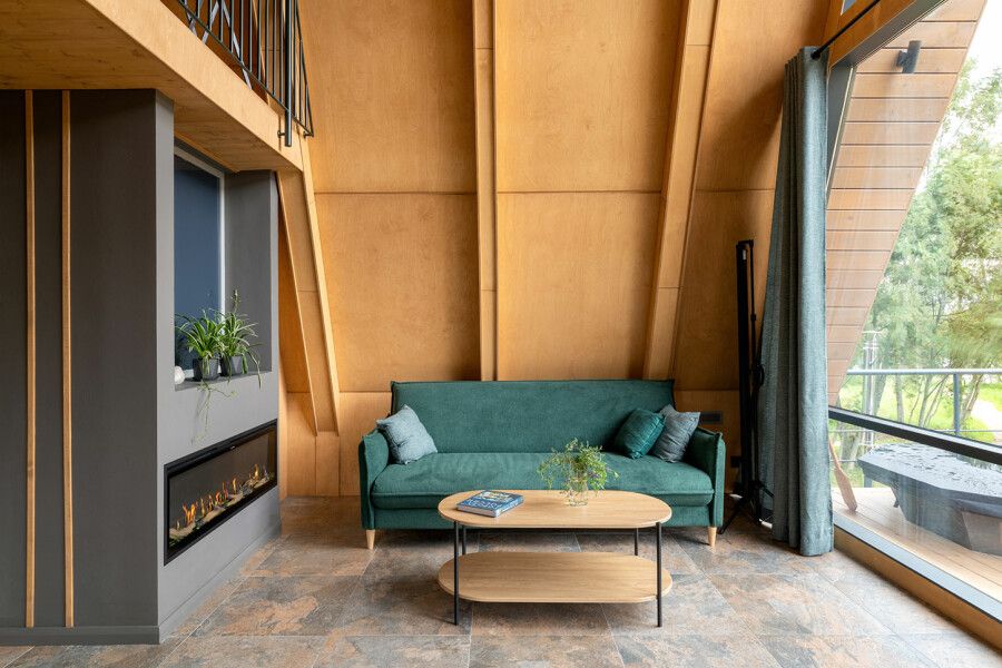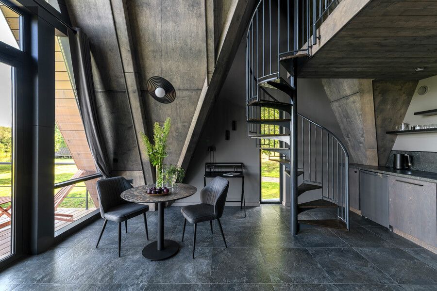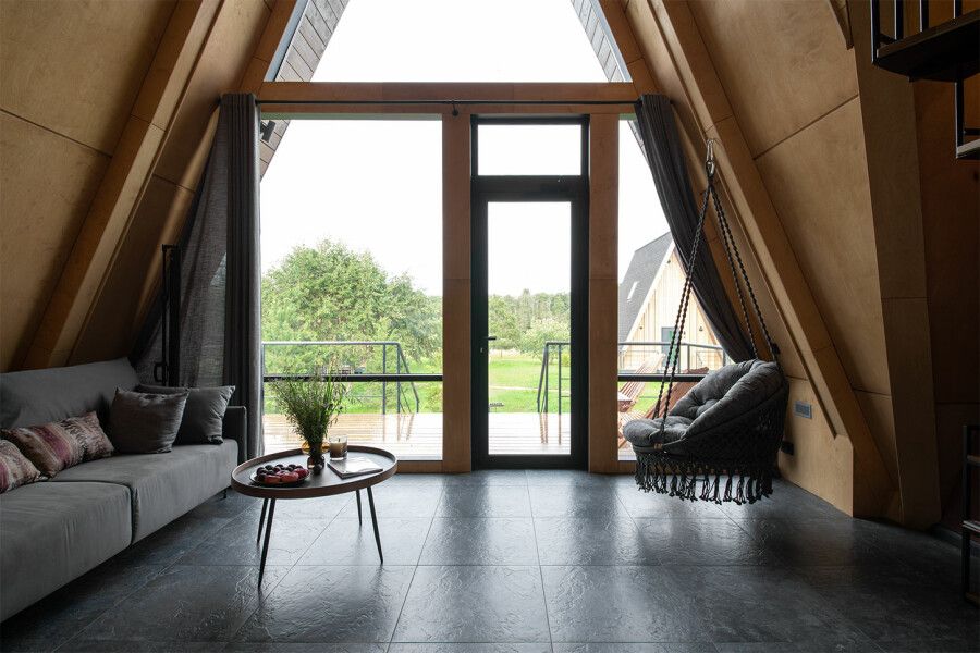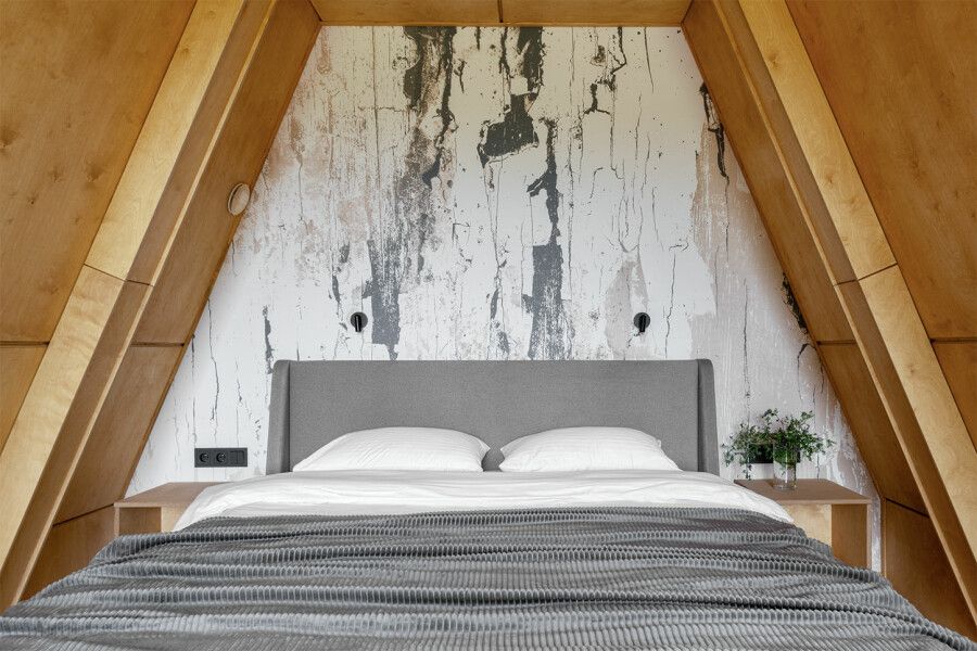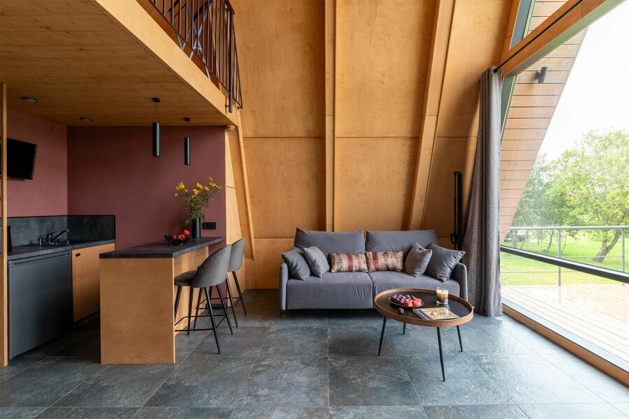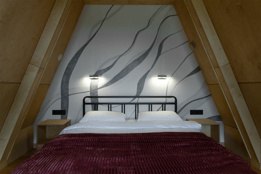 Дом площадью 50 м² для круглогодичного проживания оснащен теплым полом, системой вентиляции, кондиционером. Дом рассчитан на размещение не более 2 человек. В Дом №5 нельзя с детьми. В Дом можно заехать с собакой весом не более 3 кг.