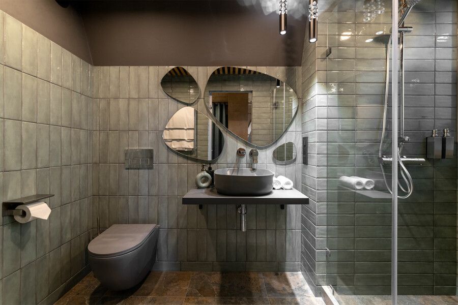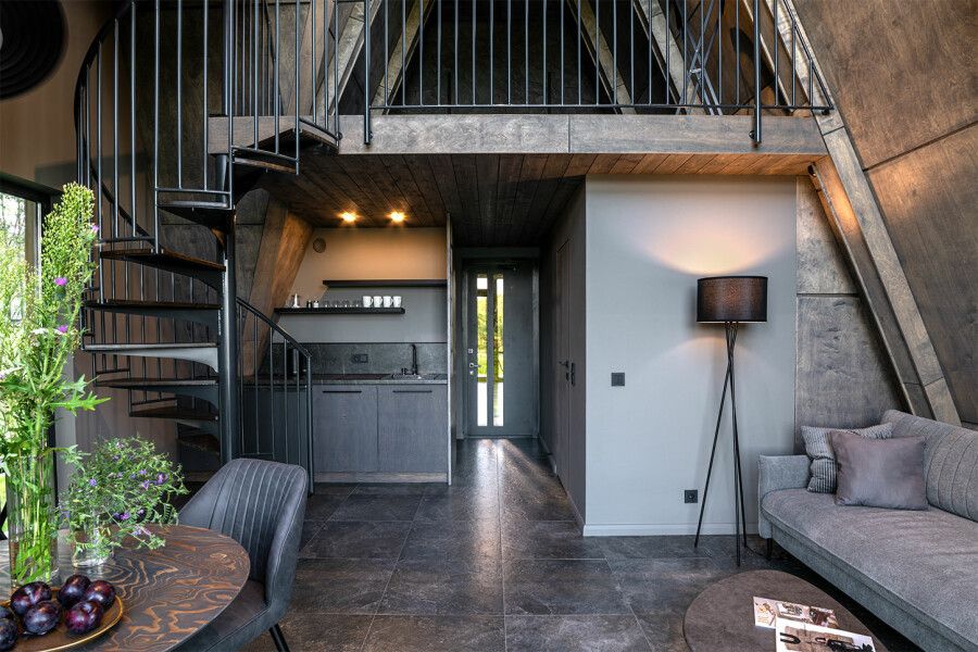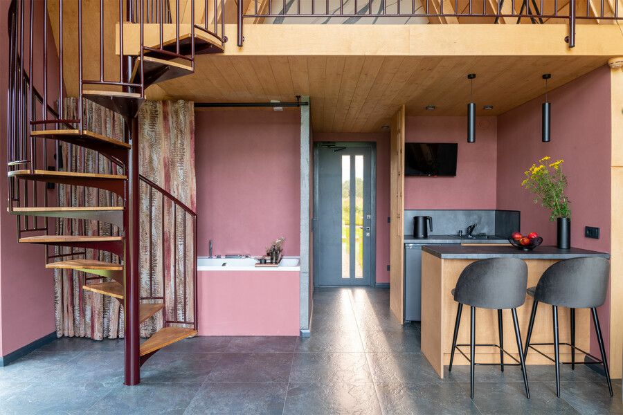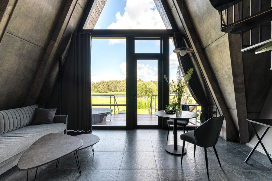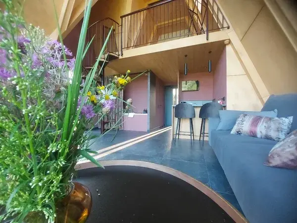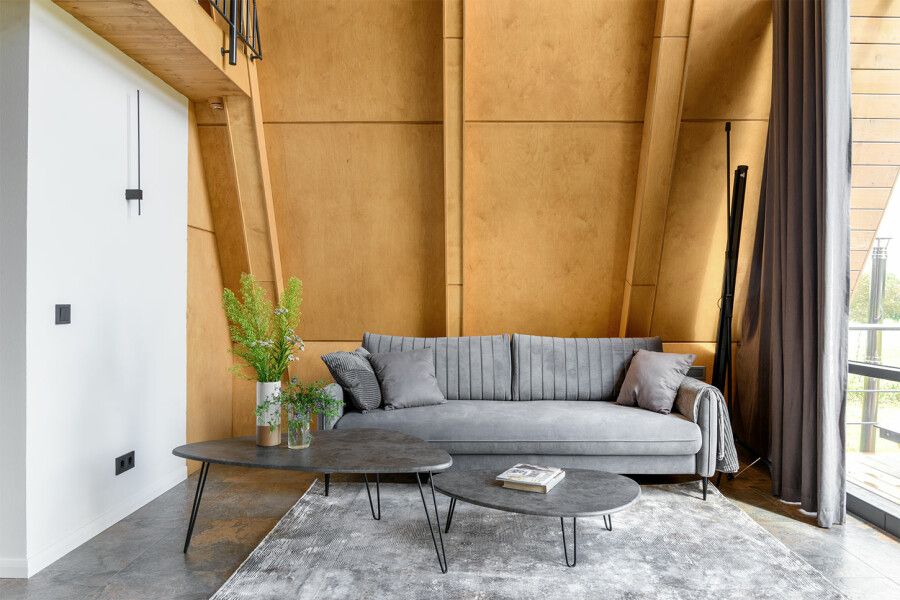 Дом площадью 50 м² для круглогодичного проживания оснащен теплым полом, системой вентиляции, кондиционером. Дом рассчитан на размещение не более 2 человек. В Дом №5 нельзя с детьми. В Дом можно заехать с собакой весом не более 3 кг.