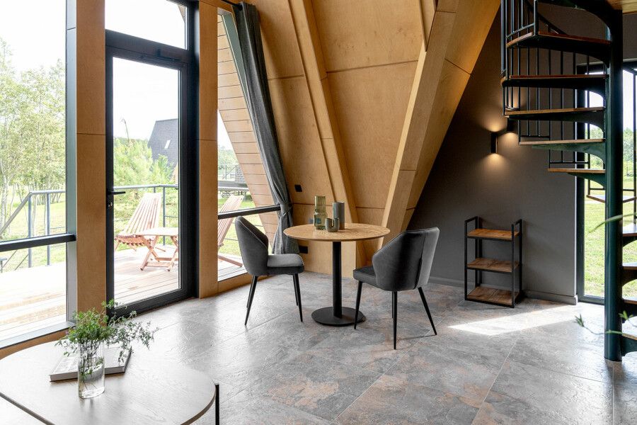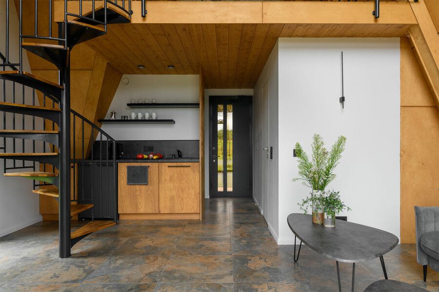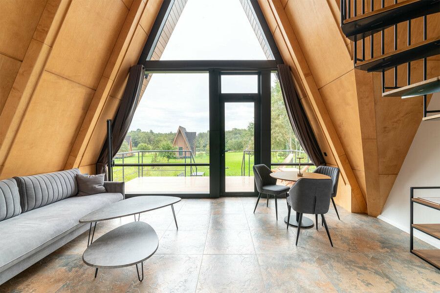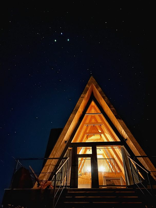 Дом площадью 50 м² для круглогодичного проживания оснащен теплым полом, системой вентиляции, кондиционером. Дом рассчитан на размещение не более 2 человек. В этот дом нельзя с детьми и собаками.