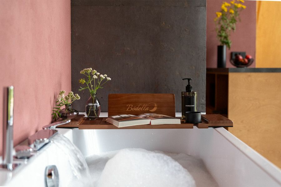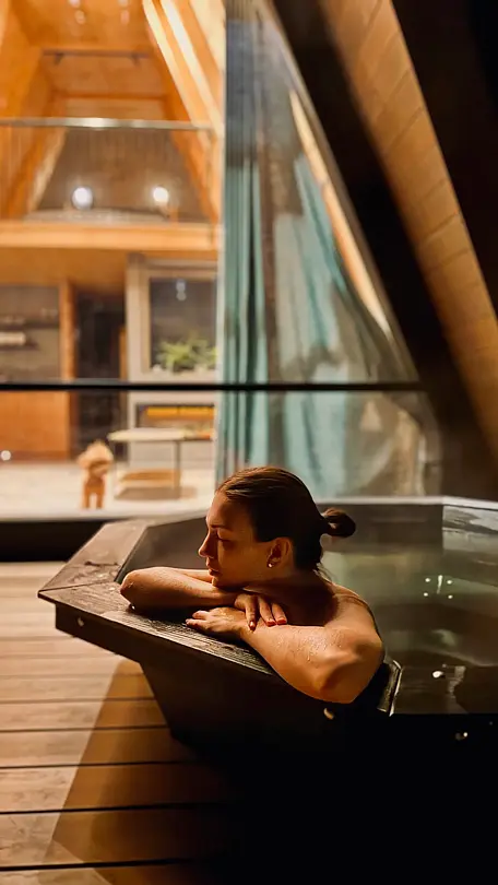 В глэмпинг парке вас ждет незабываемое времяпровождение в горячем банном чане. Наполненный кристально чистой водой и подогретый до 38–42 °C, он станет великолепным дополнением вашего отдыха. В зимнее время вы сможете наслаждаться этим удовольствием в течение 2–4 часов, а в теплые дни — с утра до вечера.