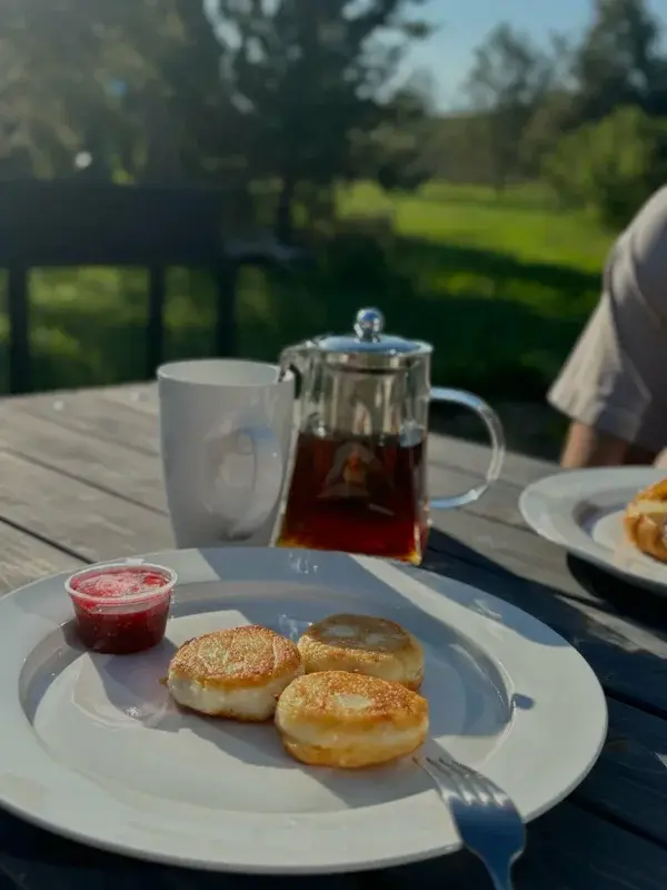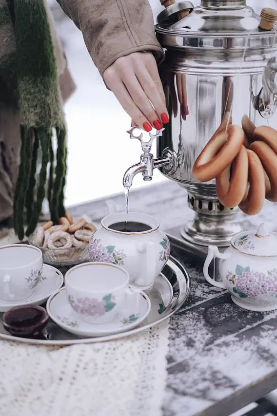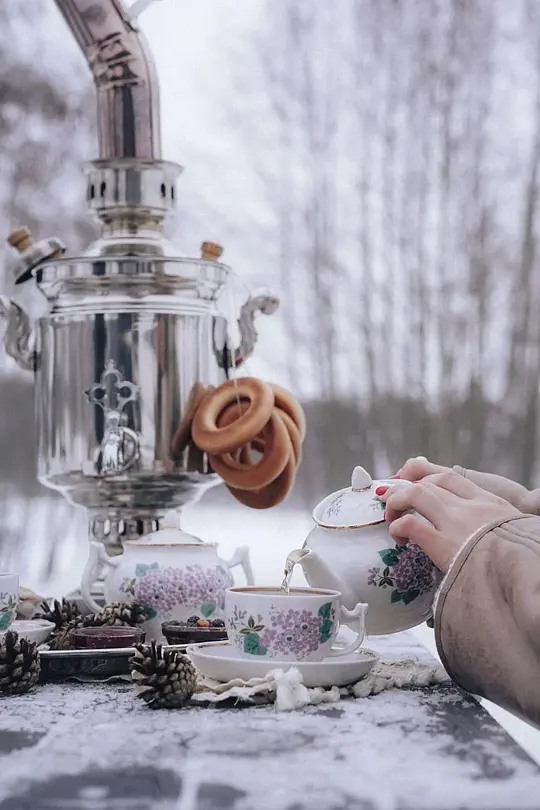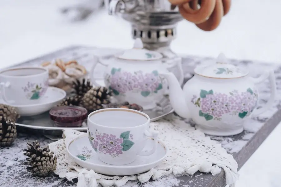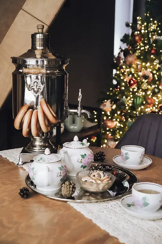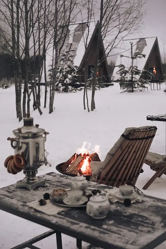 В глэмпинге гостей ждет сюрприз — настоящий русский самовар на дровах. Он станет центром вашего чаепития, а команда позаботится о том, чтобы все было идеально — накроют стол элегантной скатертью и предложат старинный чайный сервиз, хранящий множество историй.
