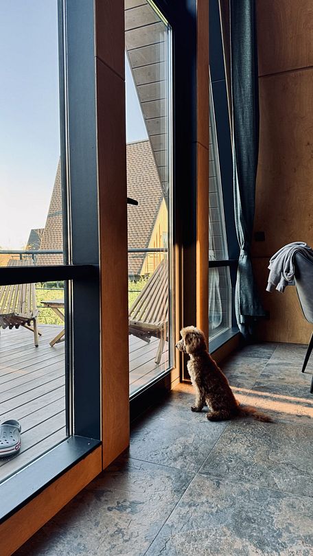 - Размещение с домашними животными возможно в домах №3, №5–7 за дополнительную плату в размере 3000 ₽/сутки. Принимаются собаки любых размеров (не более двух), за исключением пород, требующих особого внимания. Возьмите с собой лежанку для питомца и необходимые средства для ухода.