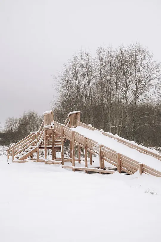 В глэмпинг парке «Трофимов Берег» для маленьких гостей предусмотрена специальная детская площадка с горкой, качелями и просторной песочницей. Это отличное место для веселых и беззаботных игр, где дети могут выплеснуть энергию и развивать фантазию.